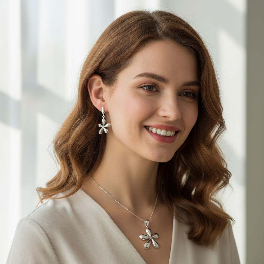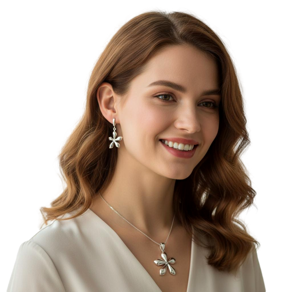 Srebrny Komplet Kwiaty Kwiatki