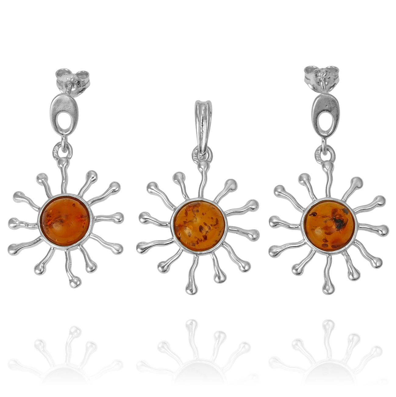 Srebrny Komplet Słońce Słoneczko z Bursztynem !