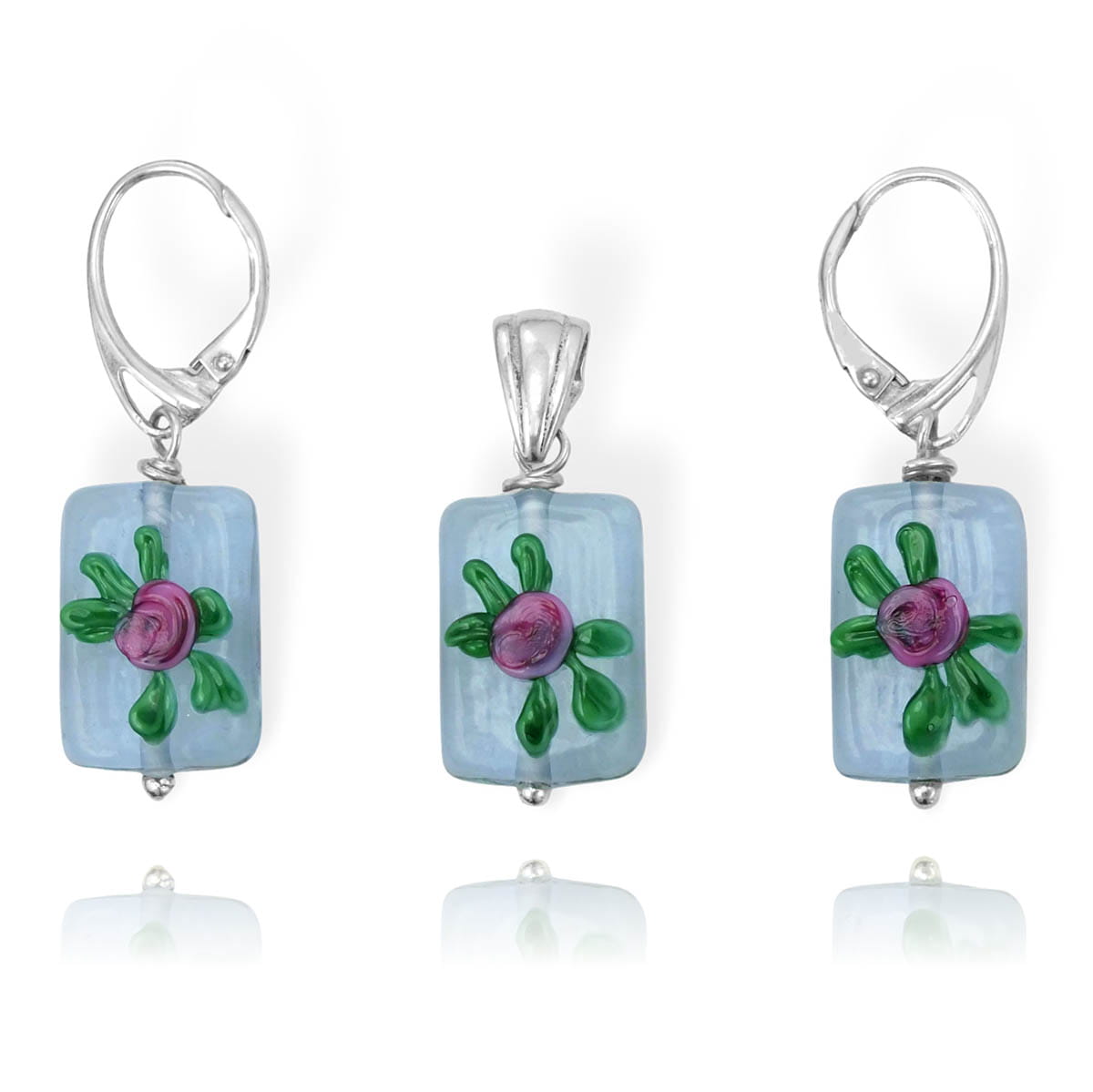 Srebrny Komplet Ze Szkła Weneckiego, Kwiaty
