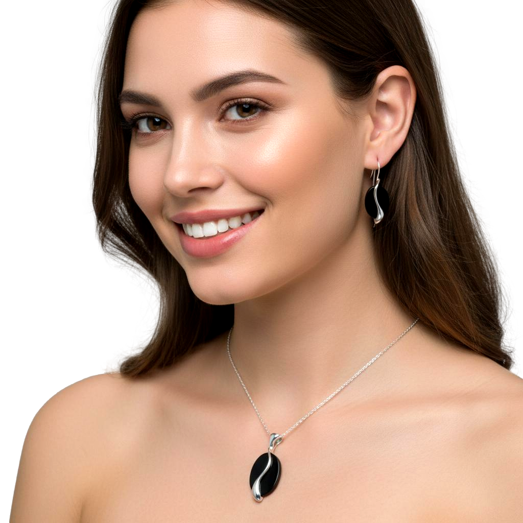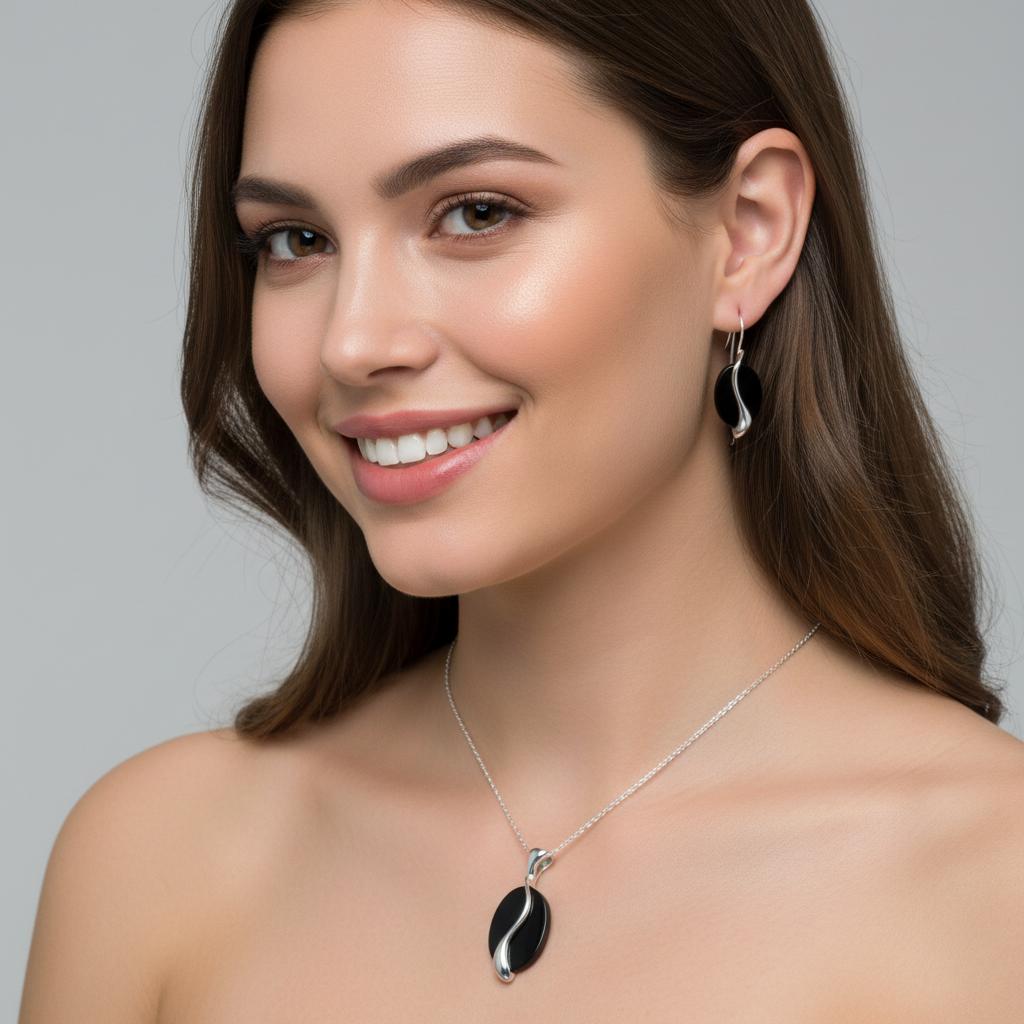 Srebrny Komplet z Czarnym Onyksem Onyks