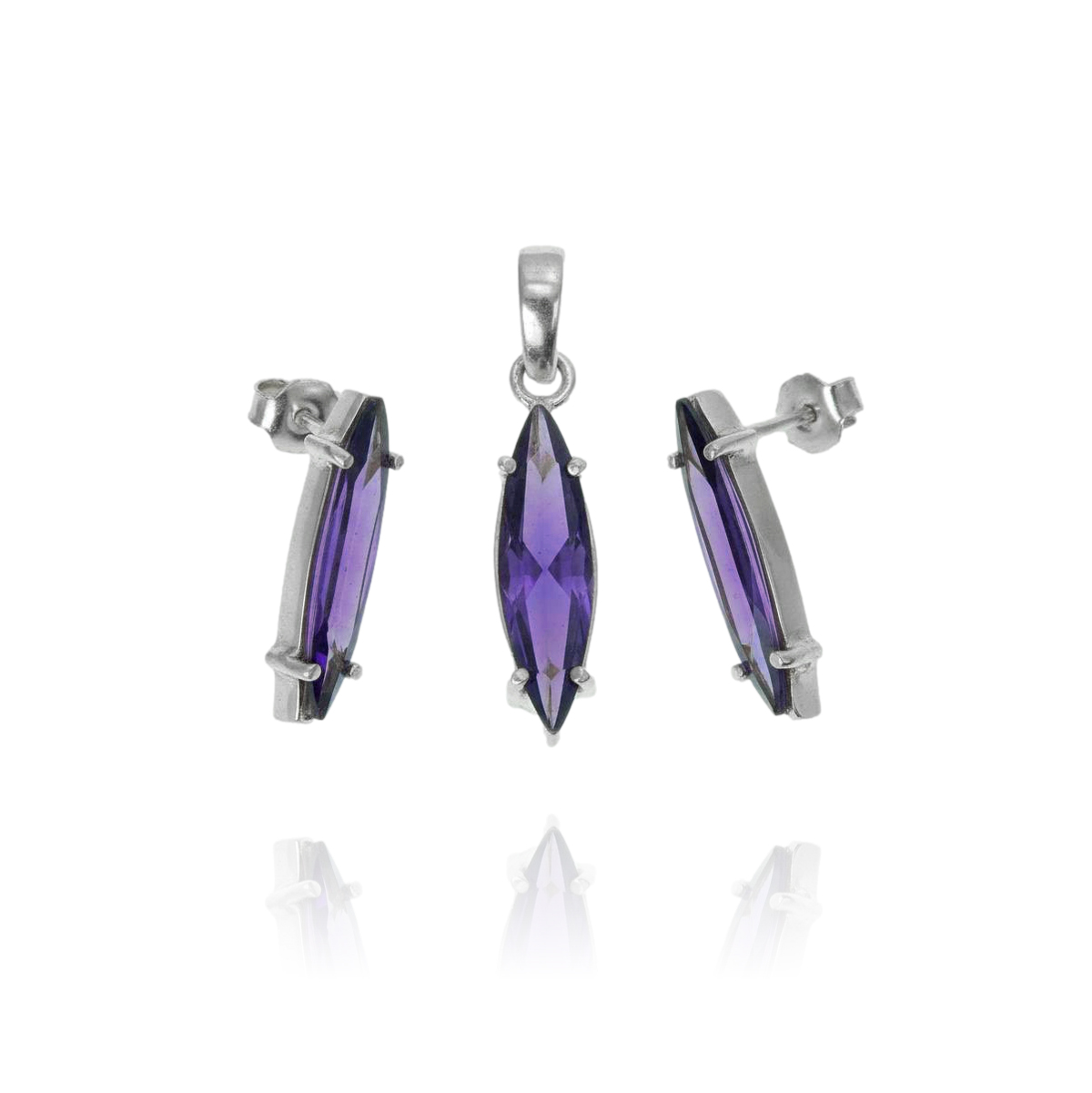 Srebrny Komplet z Fioletowymi Cyrkoniami