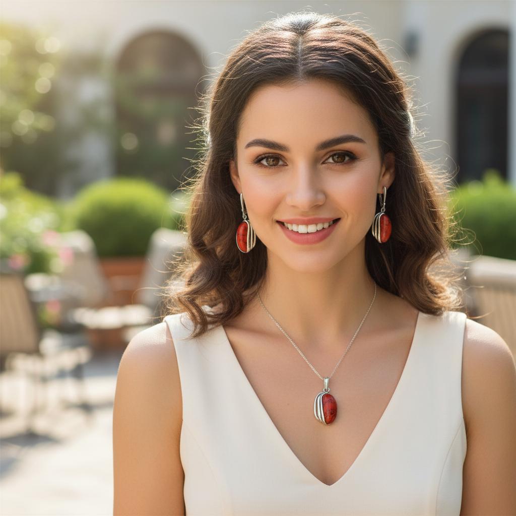 Srebrny Komplet z Jaspisem Koralowym!