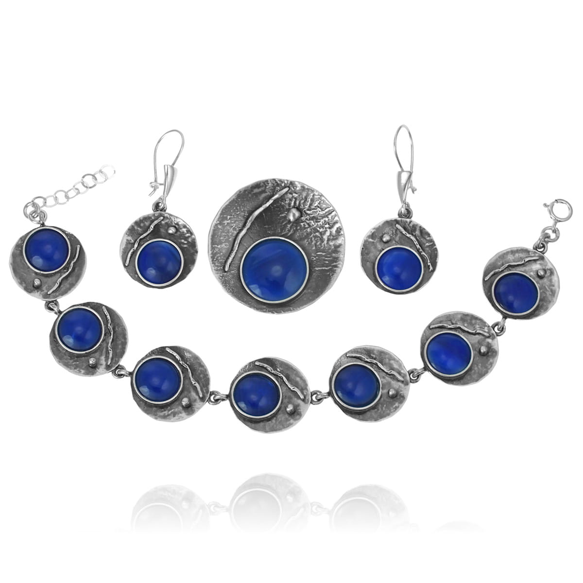 Piękny Srebrny Komplet z Niebieskim Kwarcem !