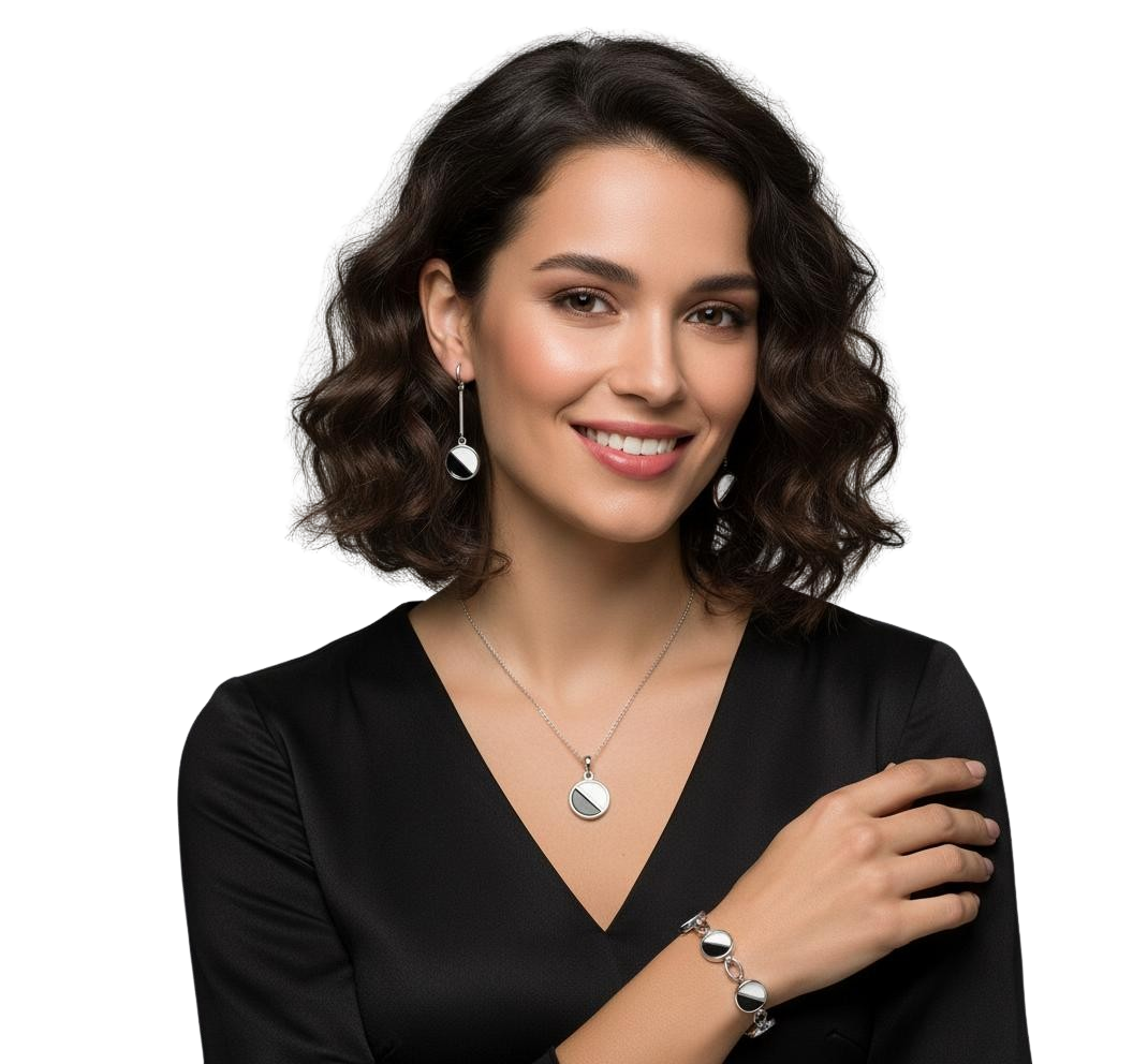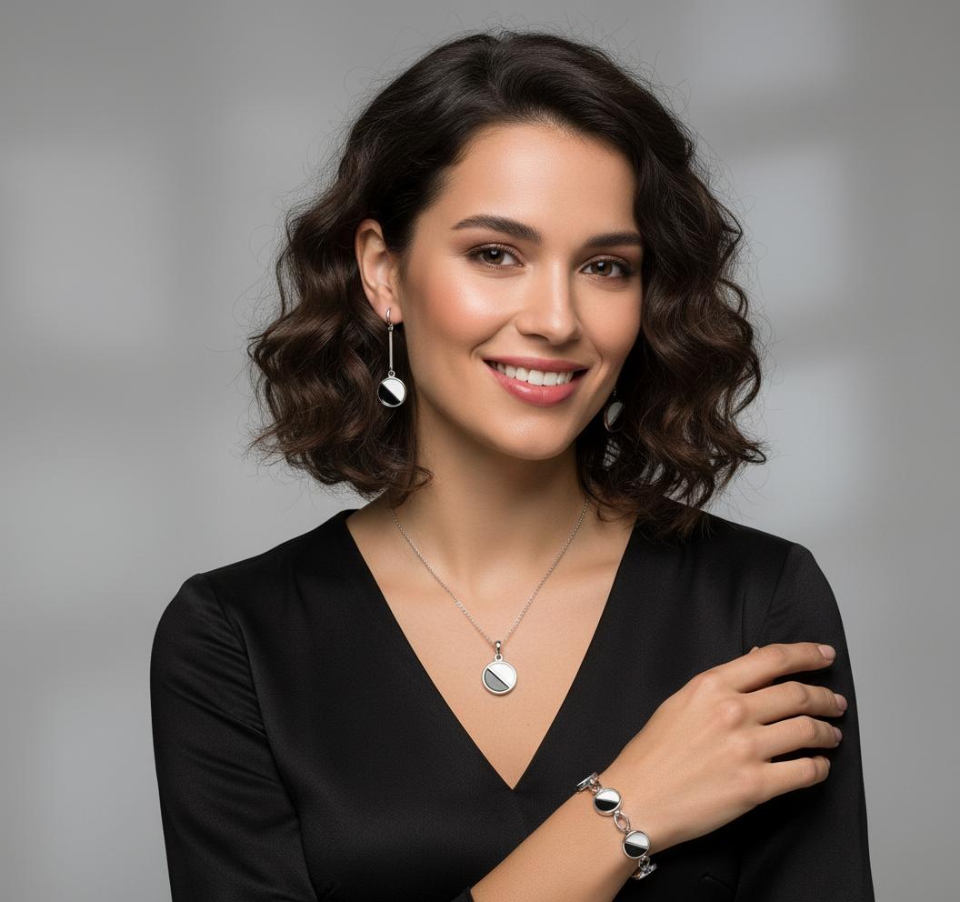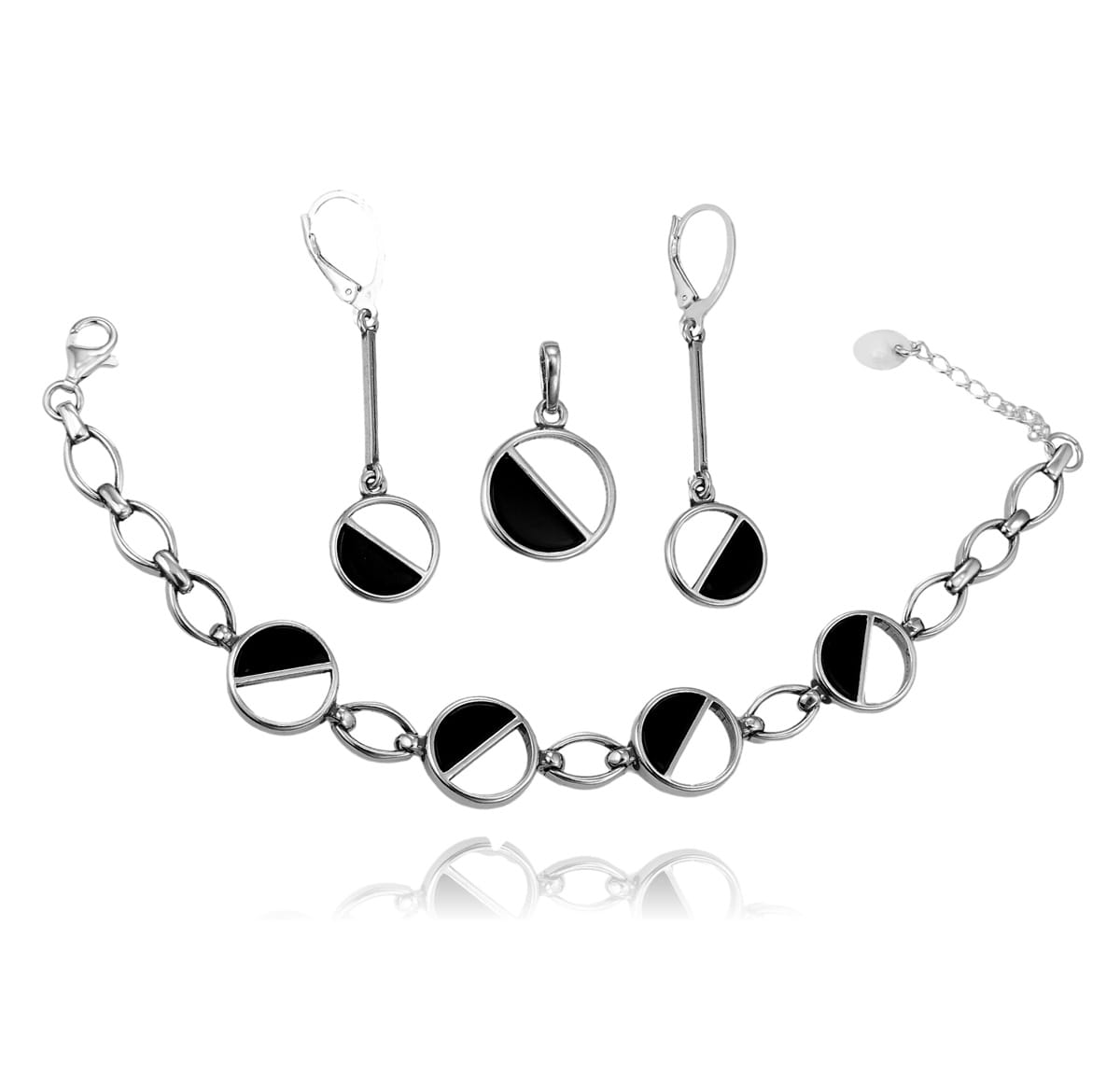 Szerokość - Bransoletka 1,4 cm. Wisiorek 1,7 cm. Kolczyki 1,3 cm.