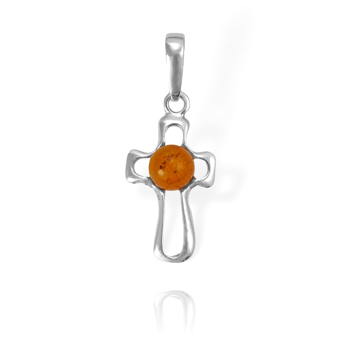 Srebrny Krzyż Krzyżyk z Bursztynem