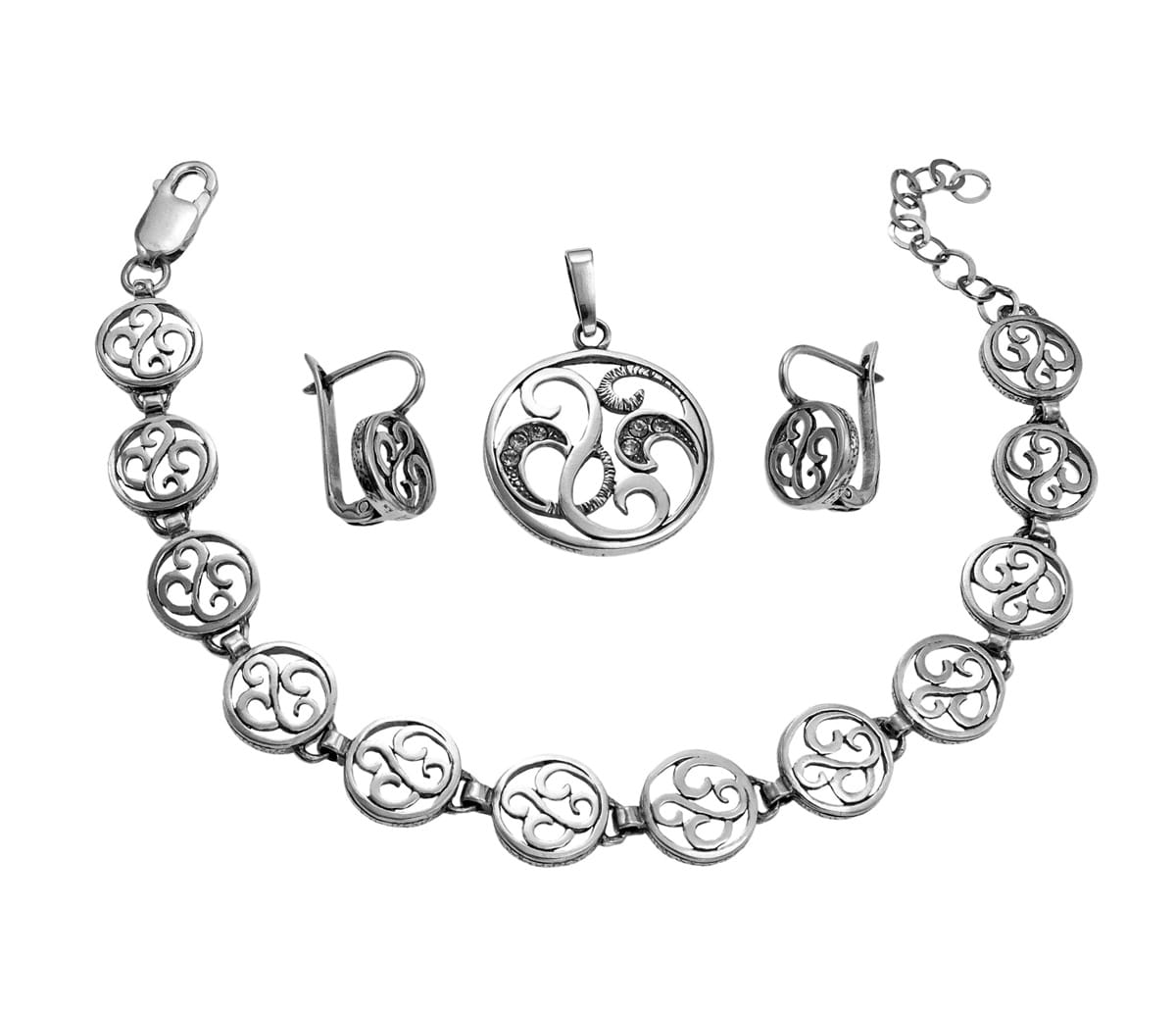 Srebrny Oksydowany Ażurowy Komplet Fantazyjny Wzór !