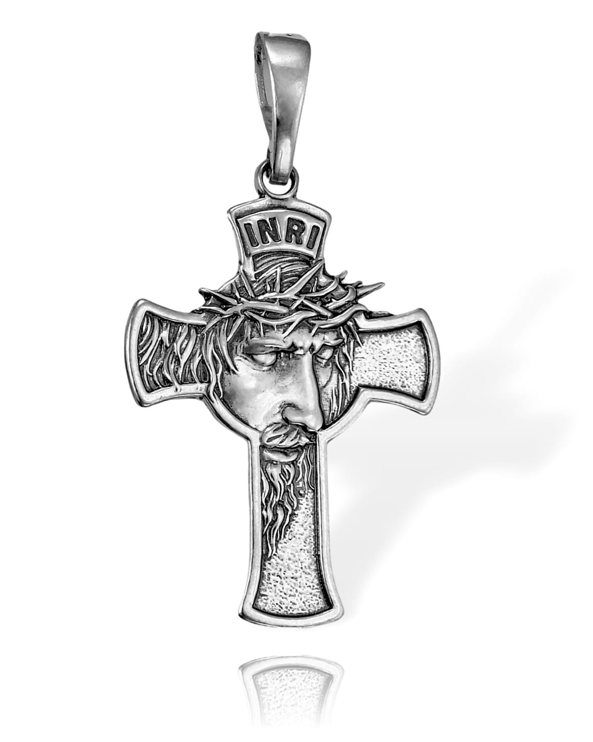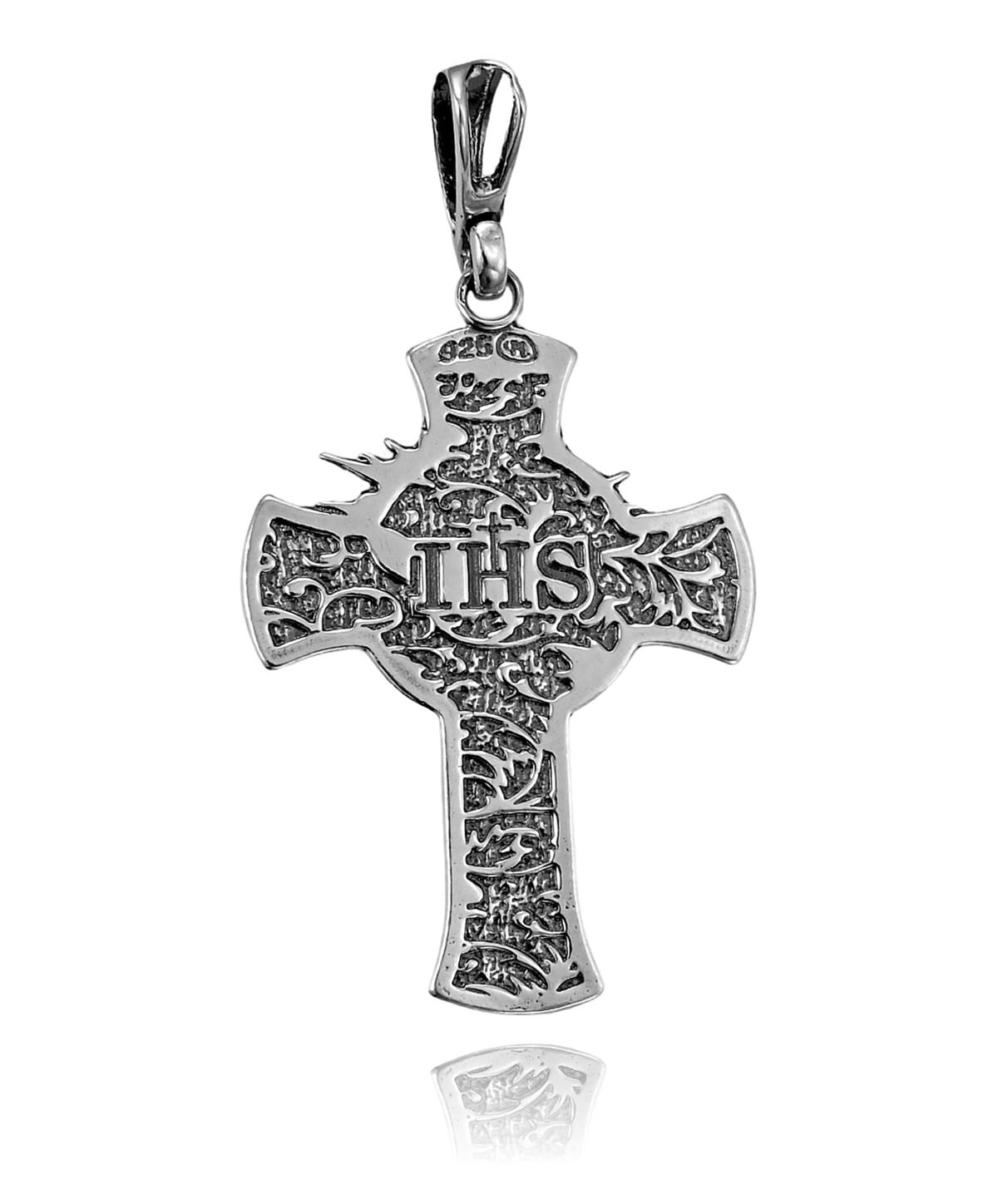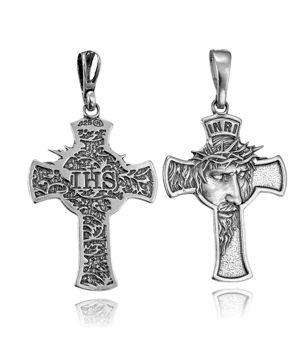 Srebrny Oksydowany Dwustronny Krzyż z Jezusem Chrystusem