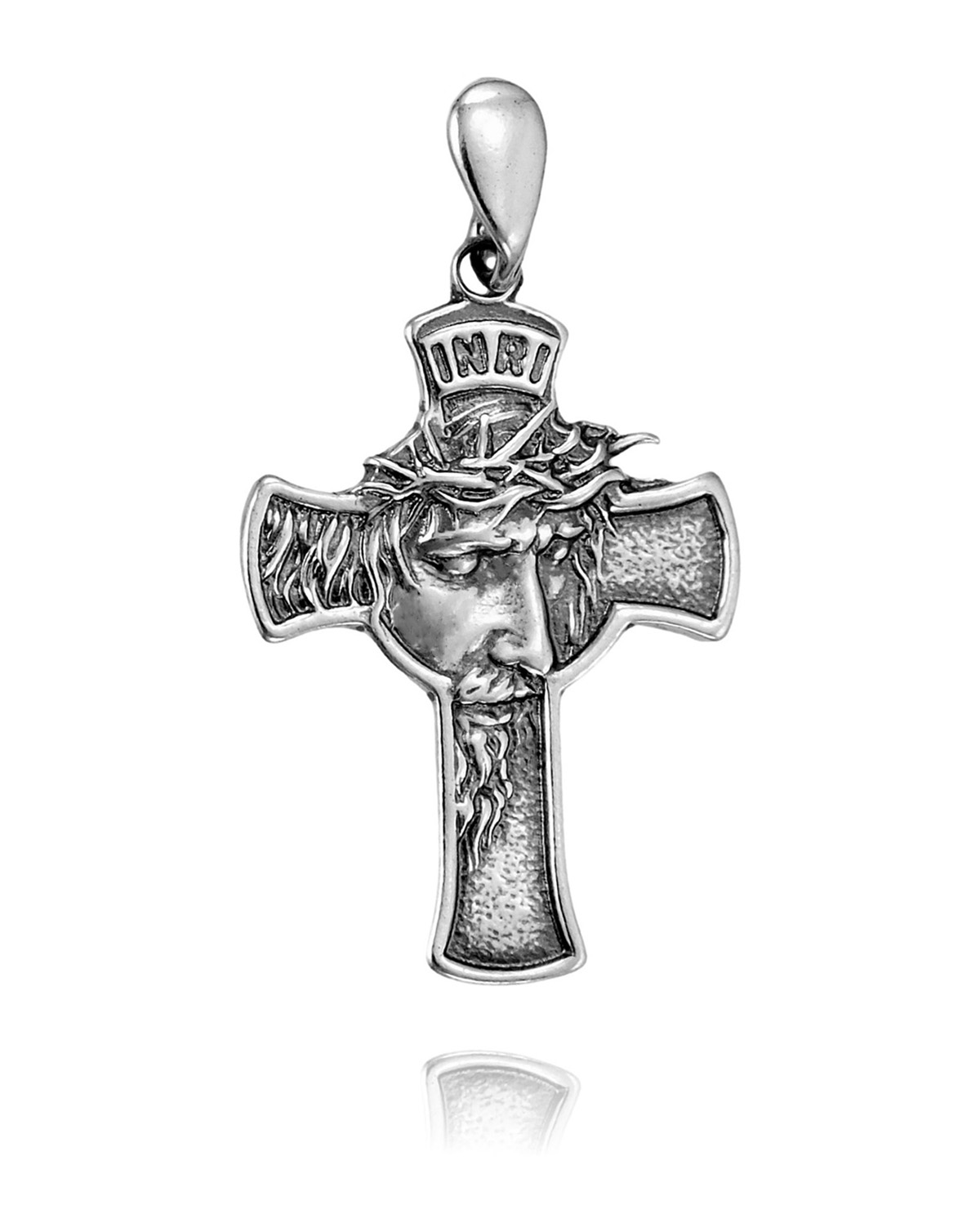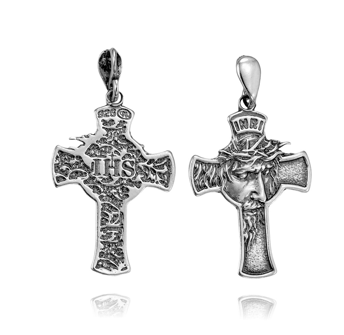 Srebrny Oksydowany Dwustronny Krzyż z Jezusem Chrystusem