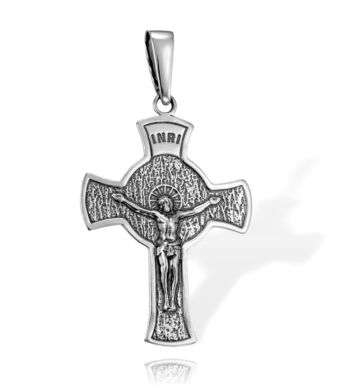 Srebrny Oksydowany Dwustronny Krzyż z Jezusem Chrystusem