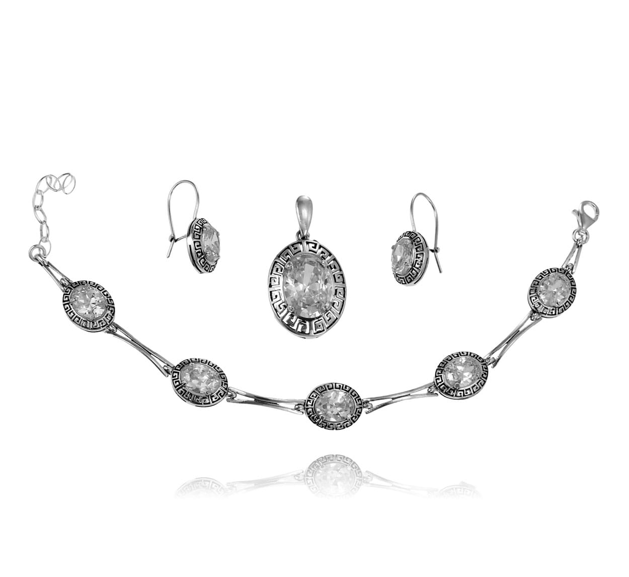 Srebrny Oksydowany Efektowny Komplet Grecki Wzór z Cyrkoniami