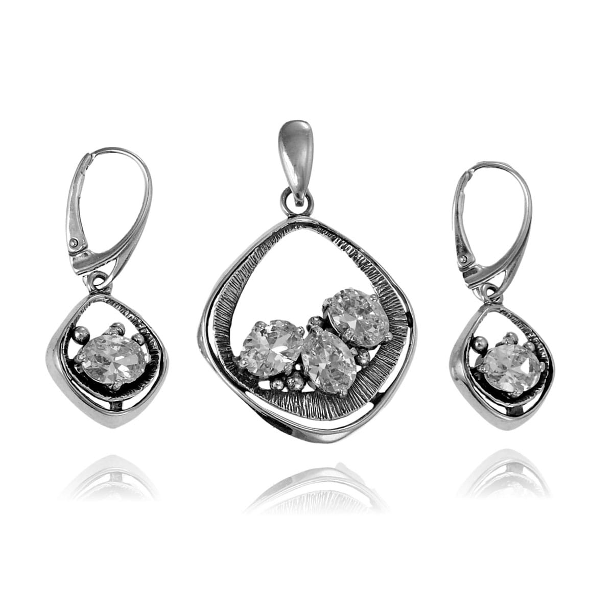 Srebrny Oksydowany Efektowny Komplet z Cyrkoniami !