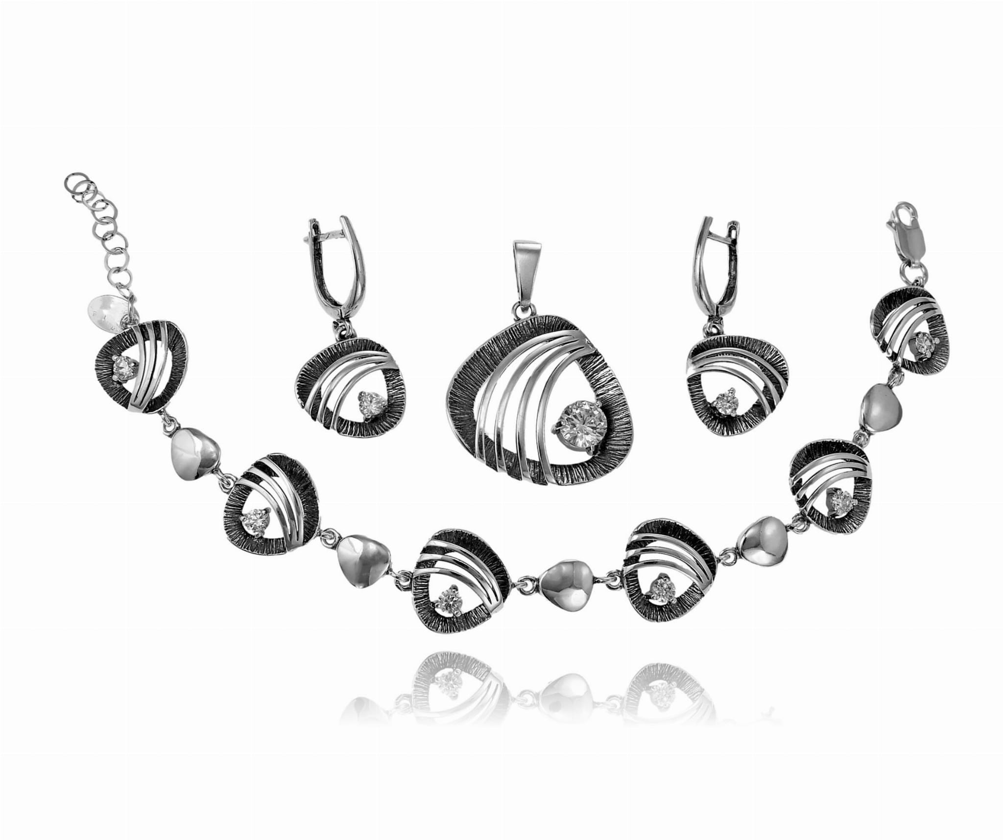Srebrny Oksydowany Efektowny Komplet z Cyrkoniami