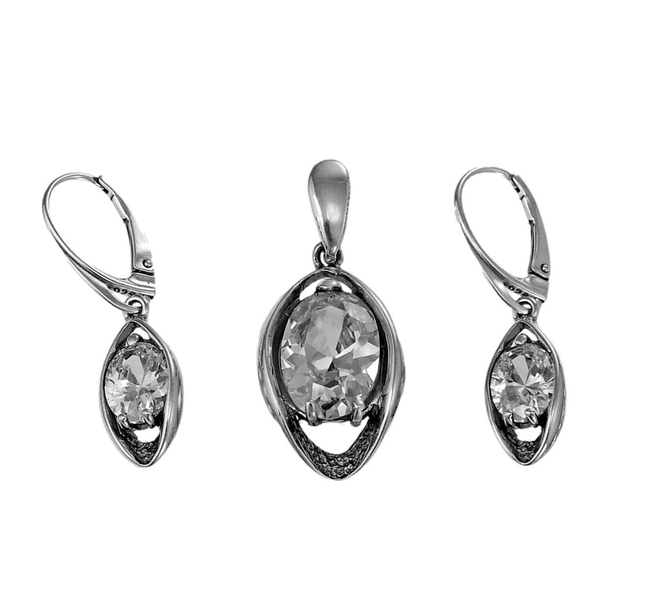 Srebrny Oksydowany Efektowny Komplet z Cyrkoniami