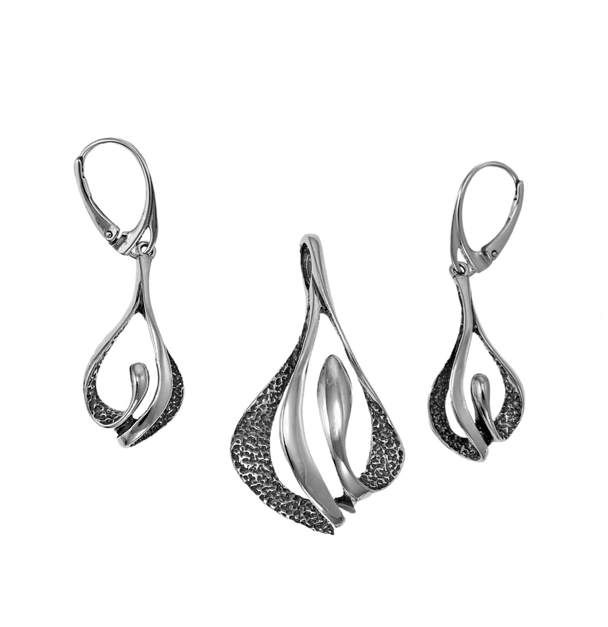 Srebrny Oksydowany Komplet Fantazyjny Wzór