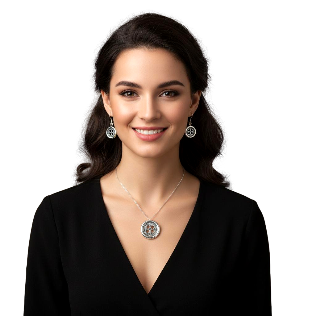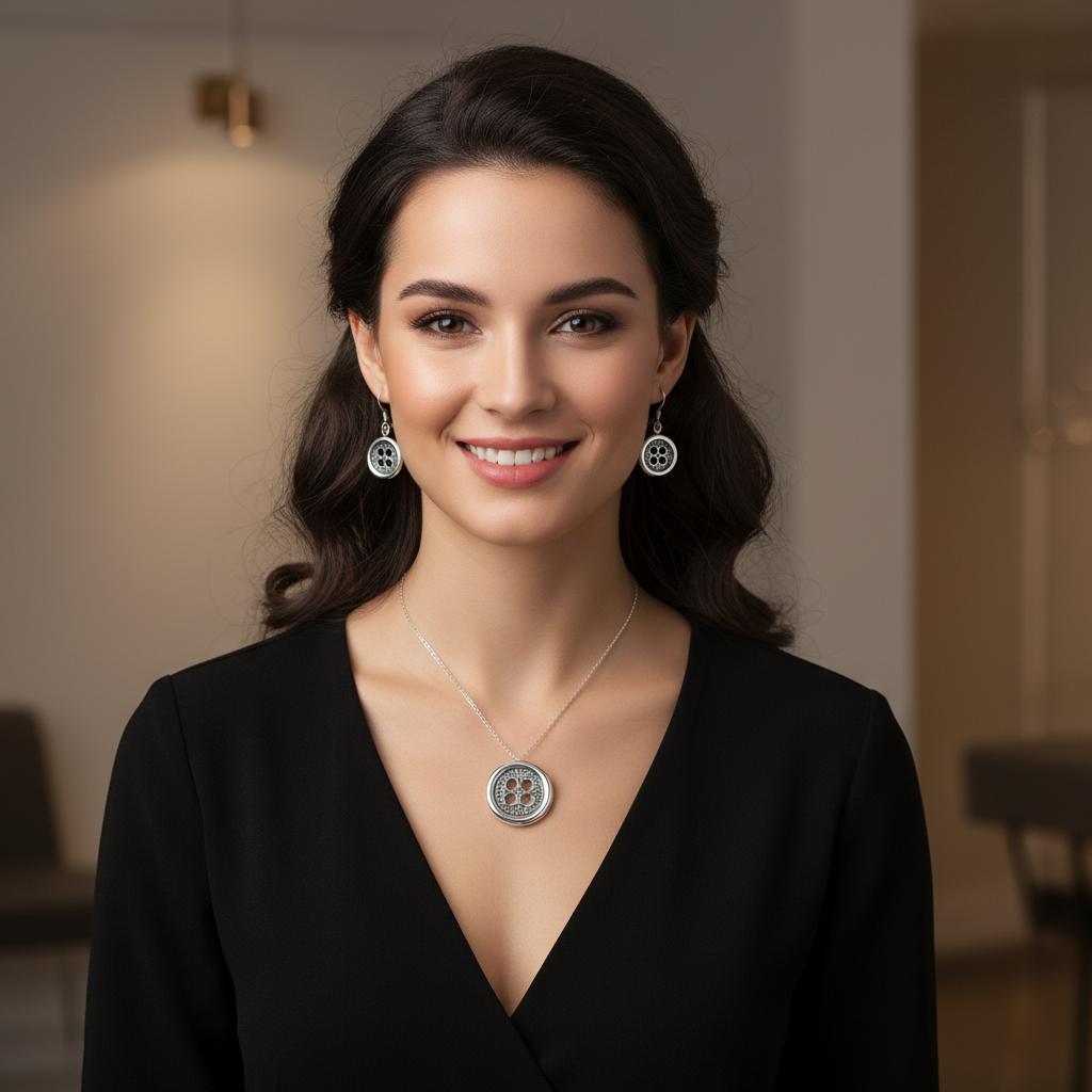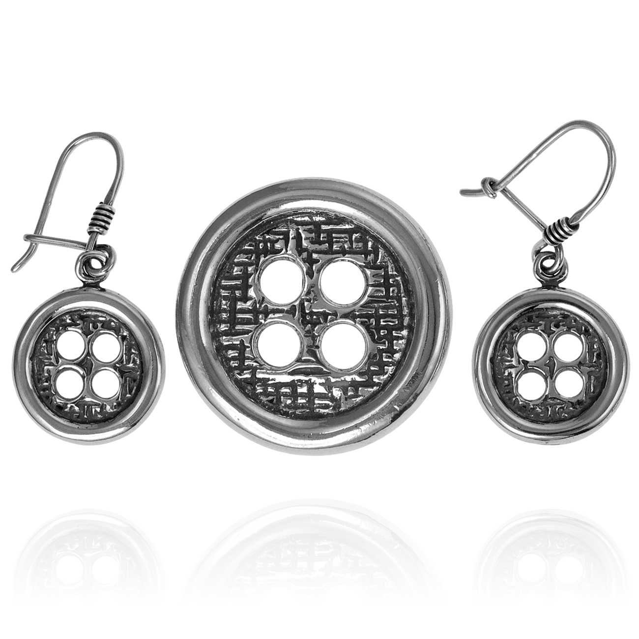 Srebrny Oksydowany Komplet Guzik Guziki !