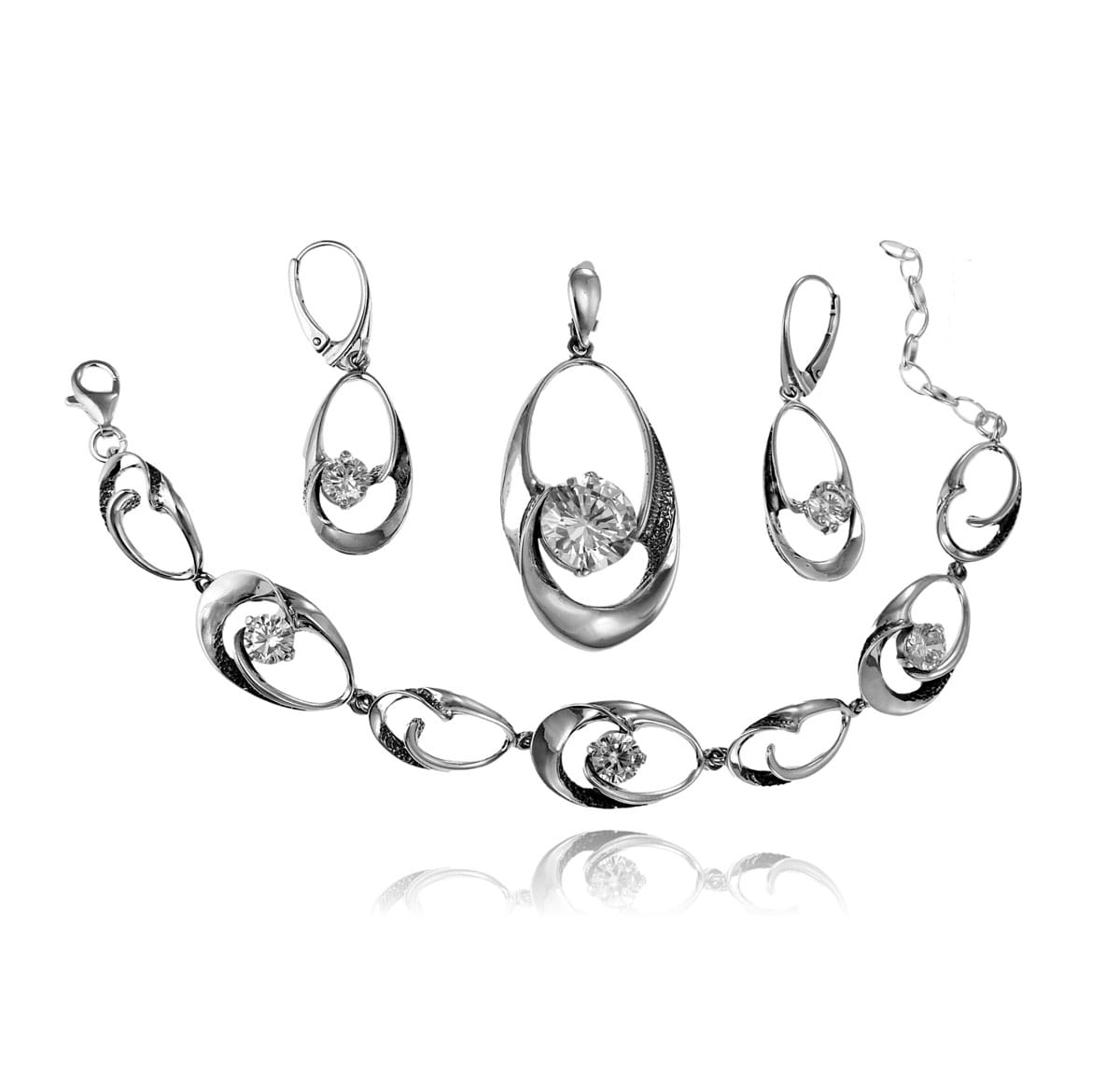 Srebrny Oksydowany Komplet z Cyrkoniami !
