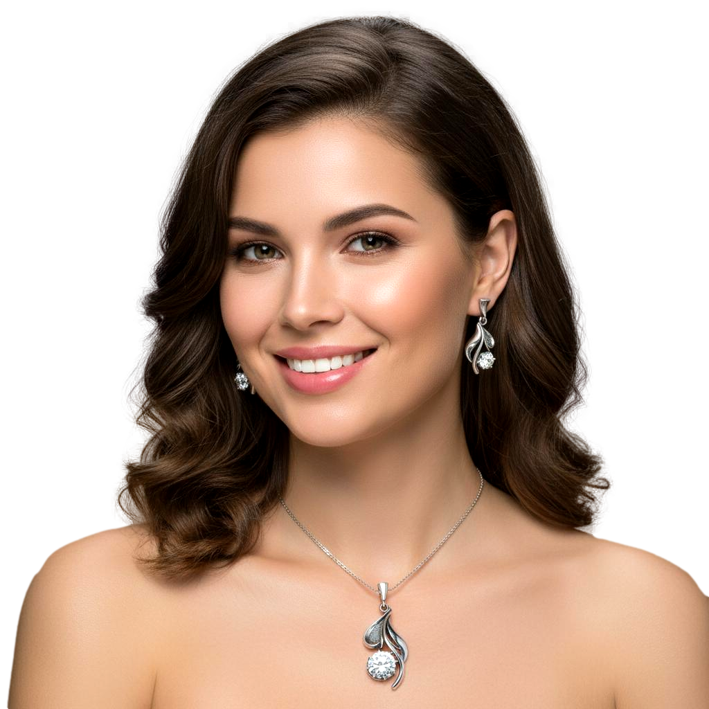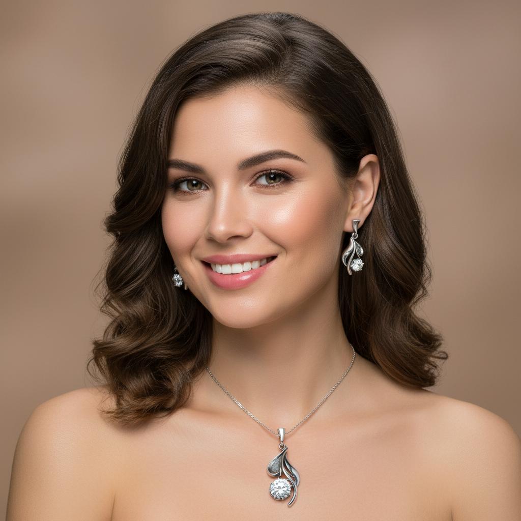 Srebrny Oksydowany Komplet z Cyrkoniami