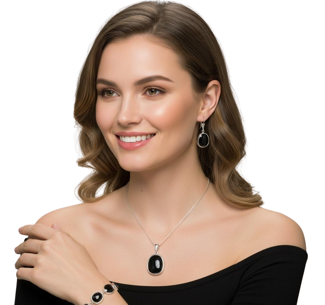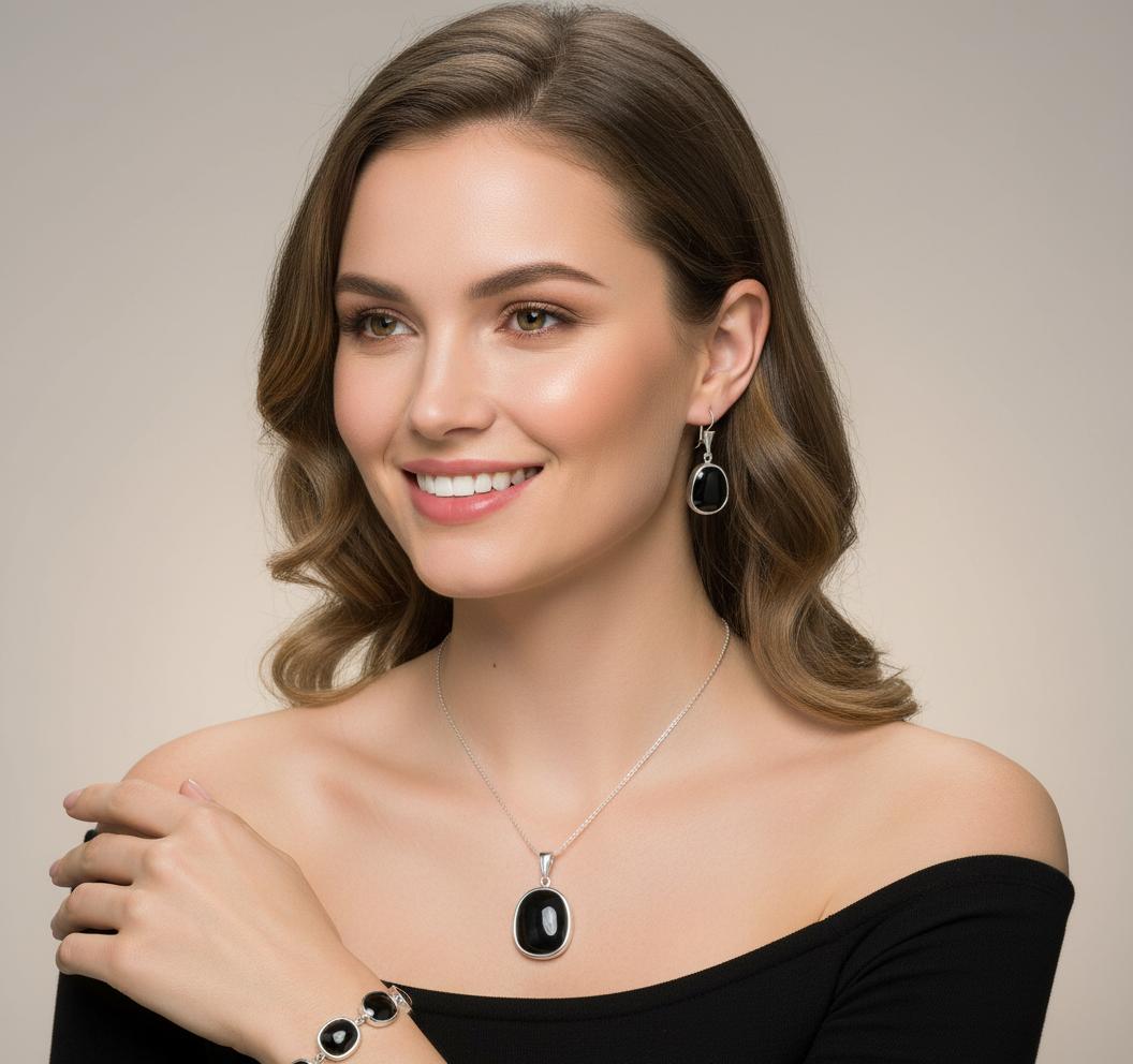 Srebrny Oksydowany Komplet z Czarnym Kwarcem