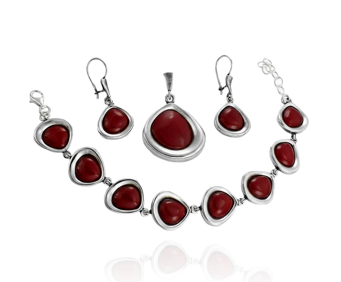 Srebrny Oksydowany Komplet z Czerwonym Kwarcem !