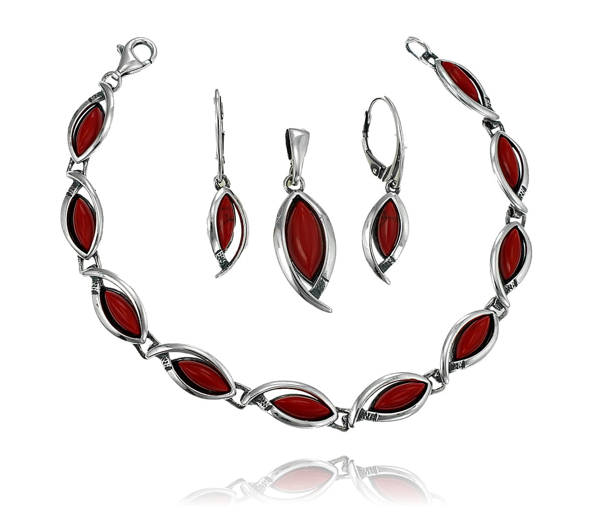 Szerokość - Bransoletka 0,8 cm. Wisiorek 1,1 cm. Kolczyki 0,8 cm.