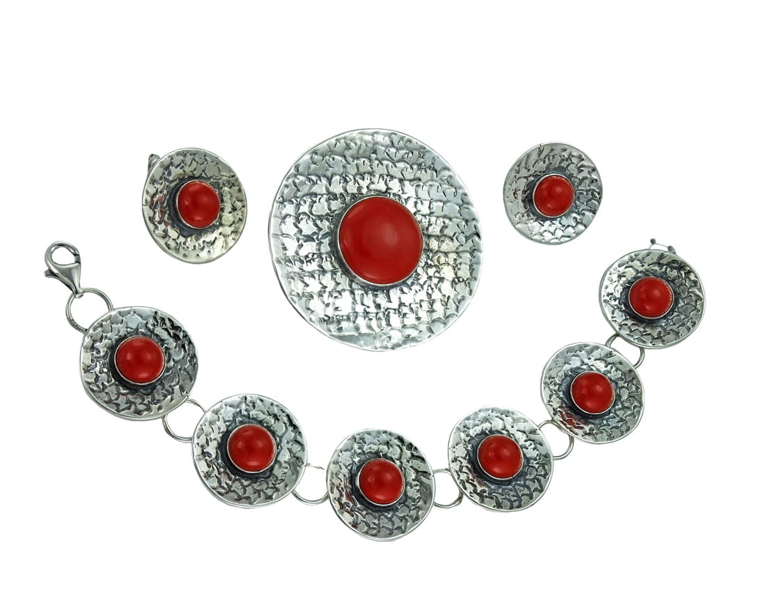 Srebrny Oksydowany Komplet z Jaspisem Koralowym !!! Polecam !