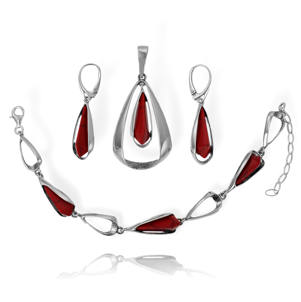 Długość - Bransoletka 17,5 cm. z przedł. łańcuszkowym do 22 cm. Wisiorek 5,8 cm. z zawieszką Kolczyki 4,6 cm.