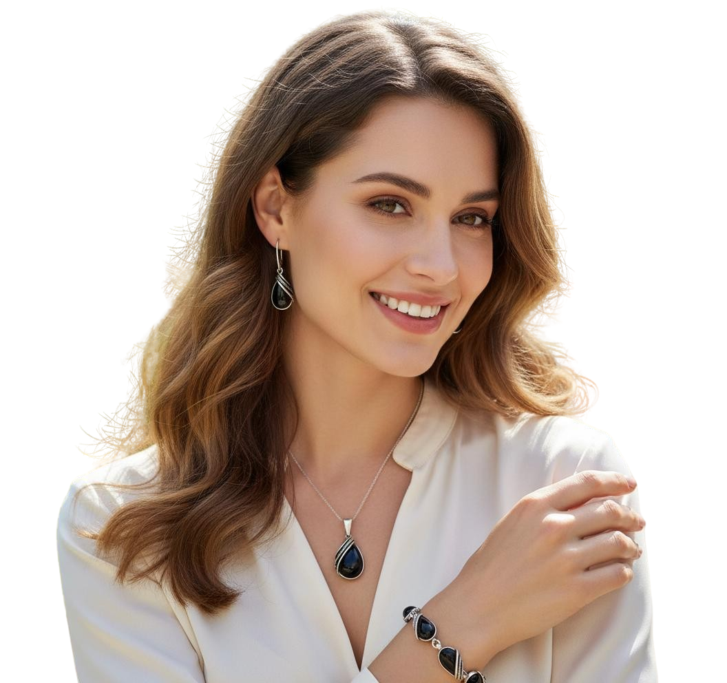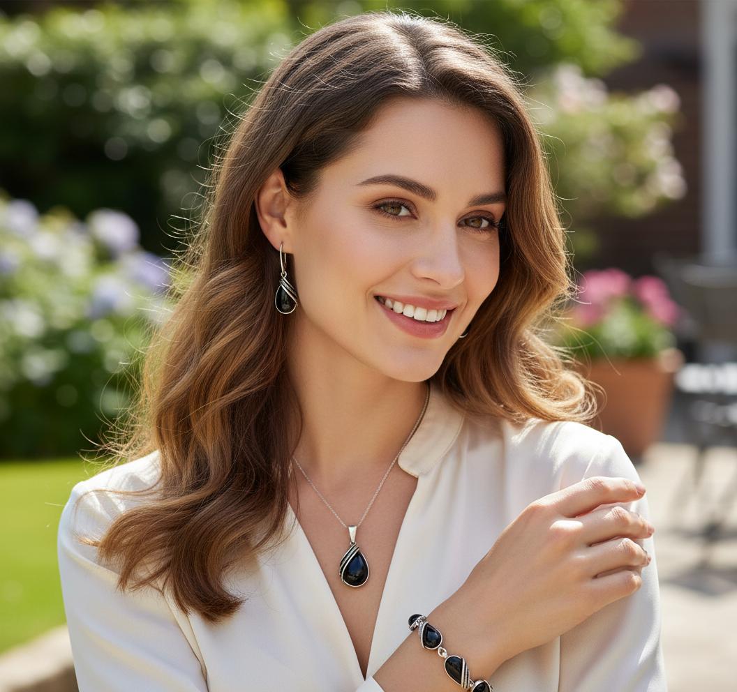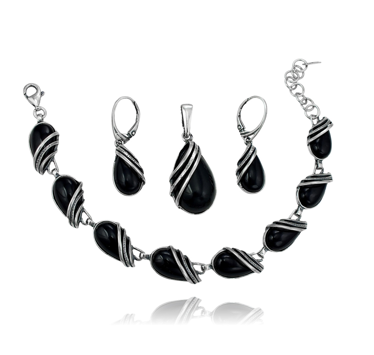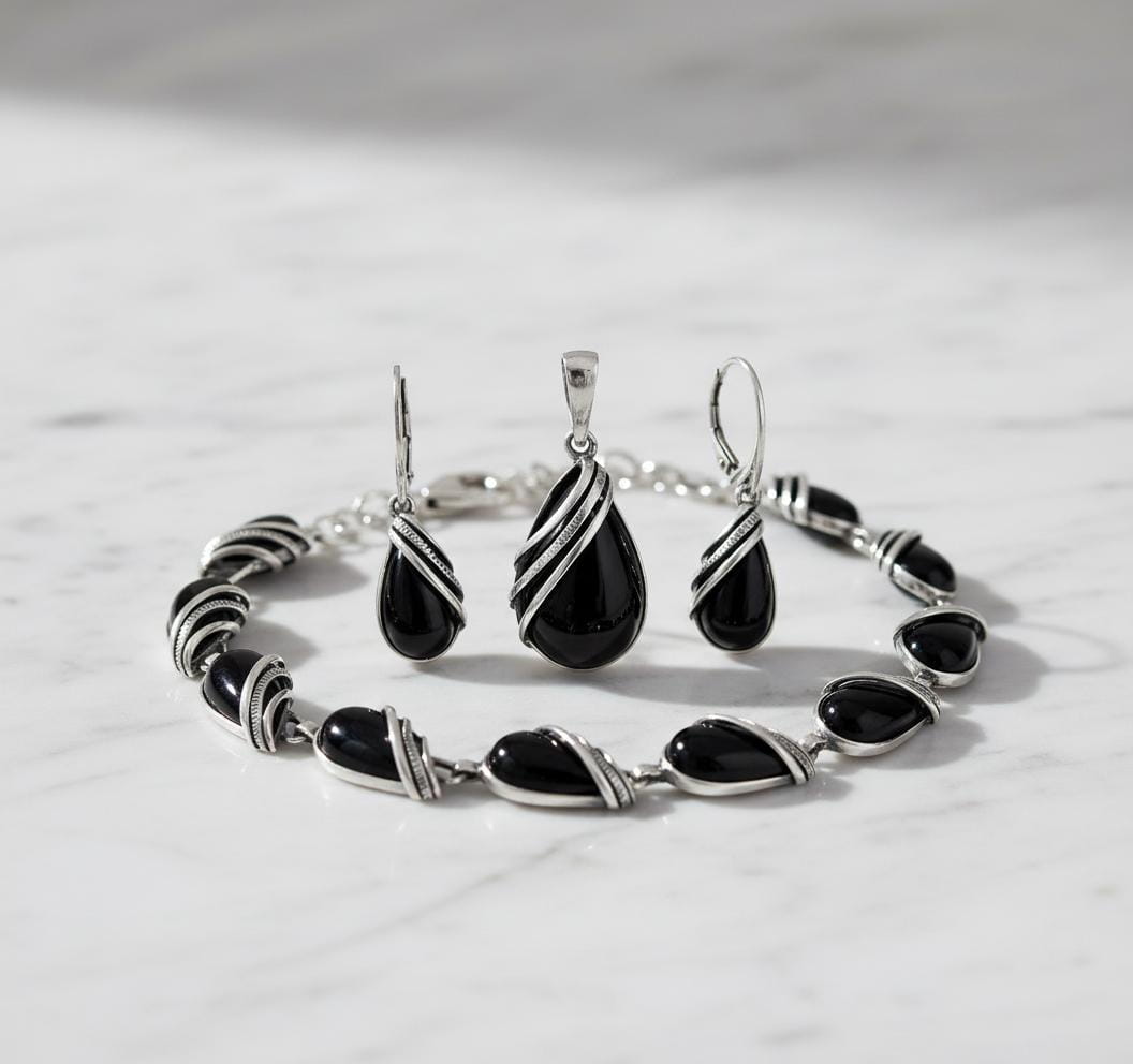 Srebrny Oksydowany Komplet z Onyksem