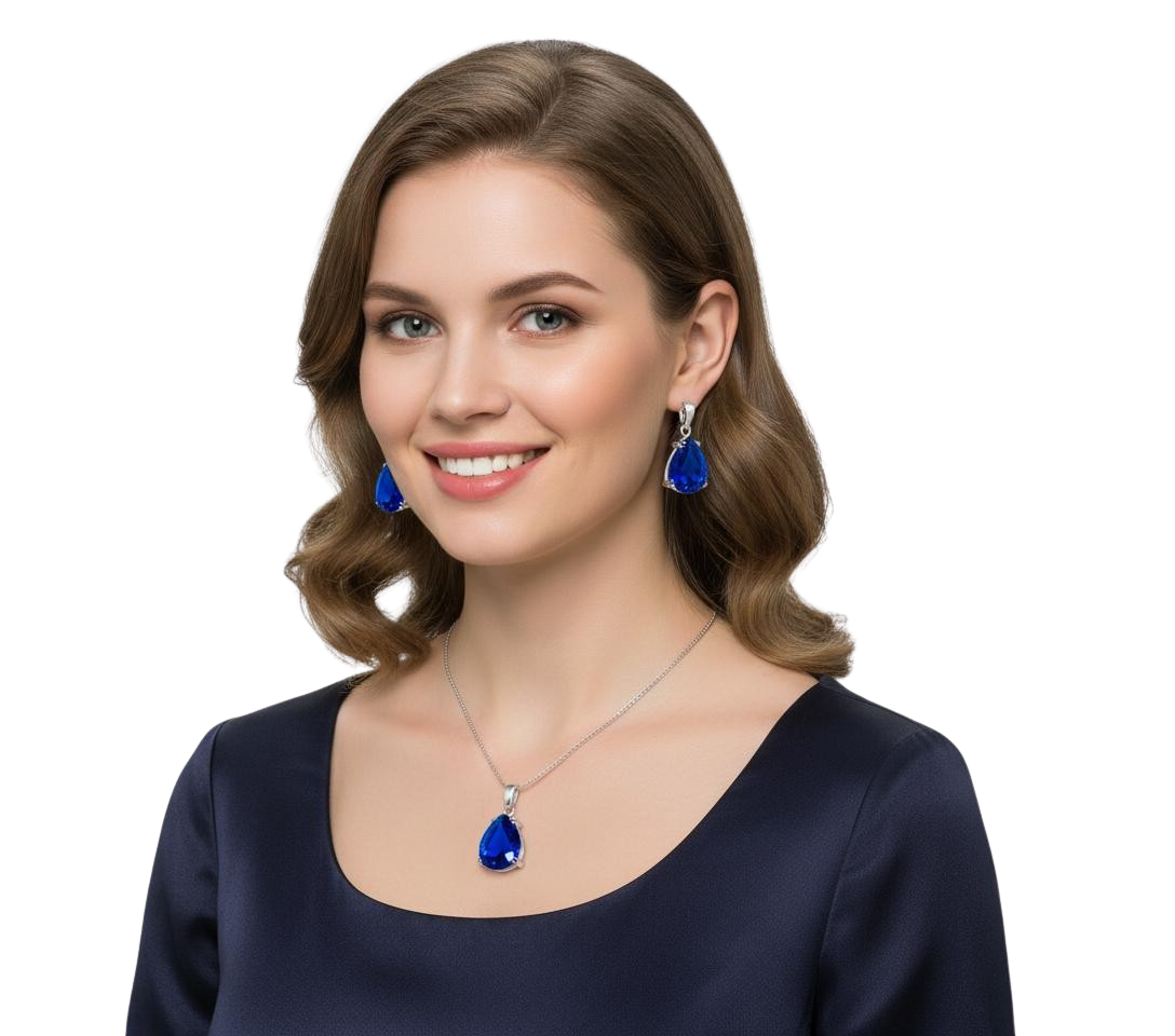 Srebrny Oksydowany Komplet z Szafirowymi Dużymi Cyrkoniami