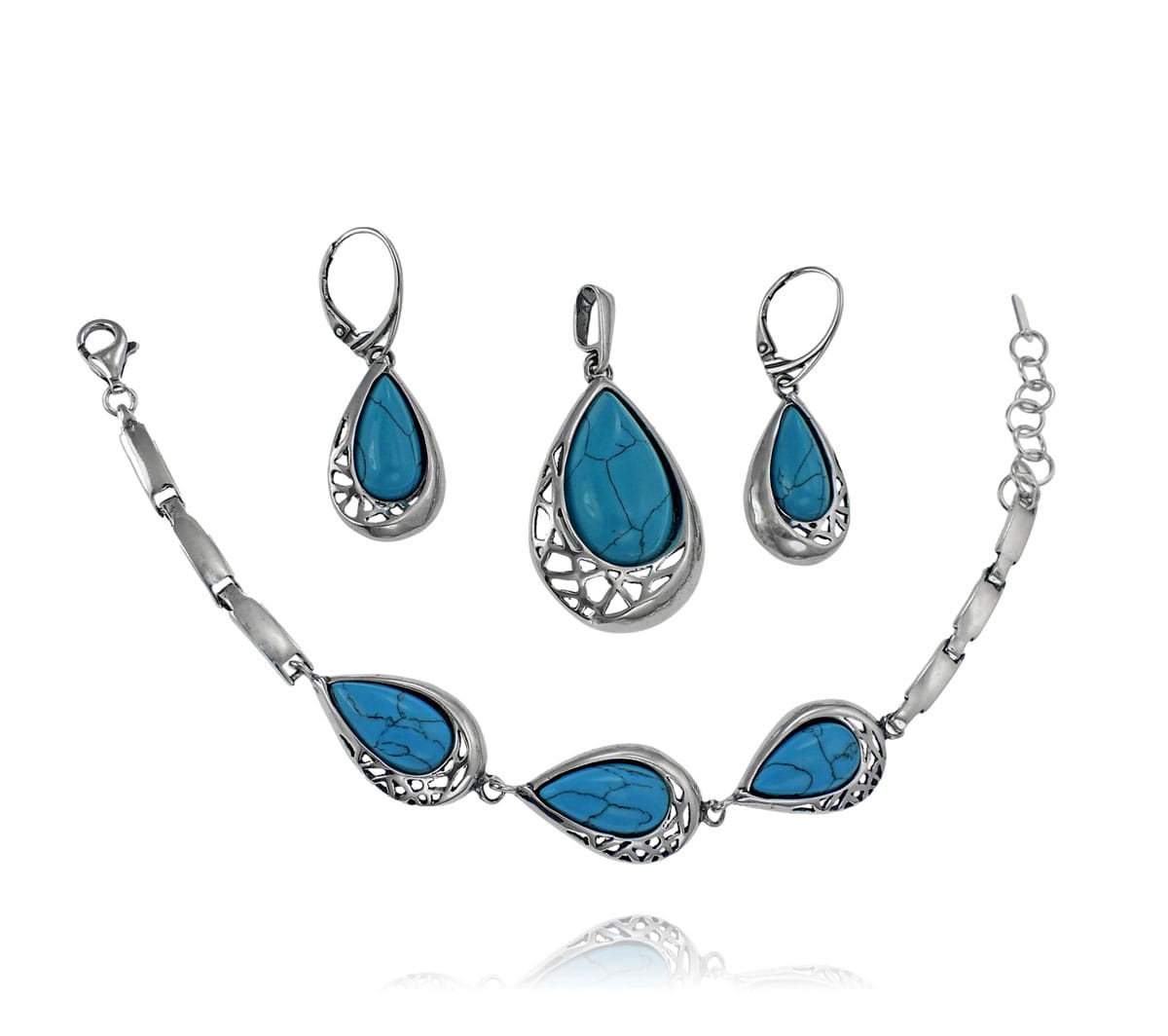 Srebrny Oksydowany Komplet z Turkusami Turkus