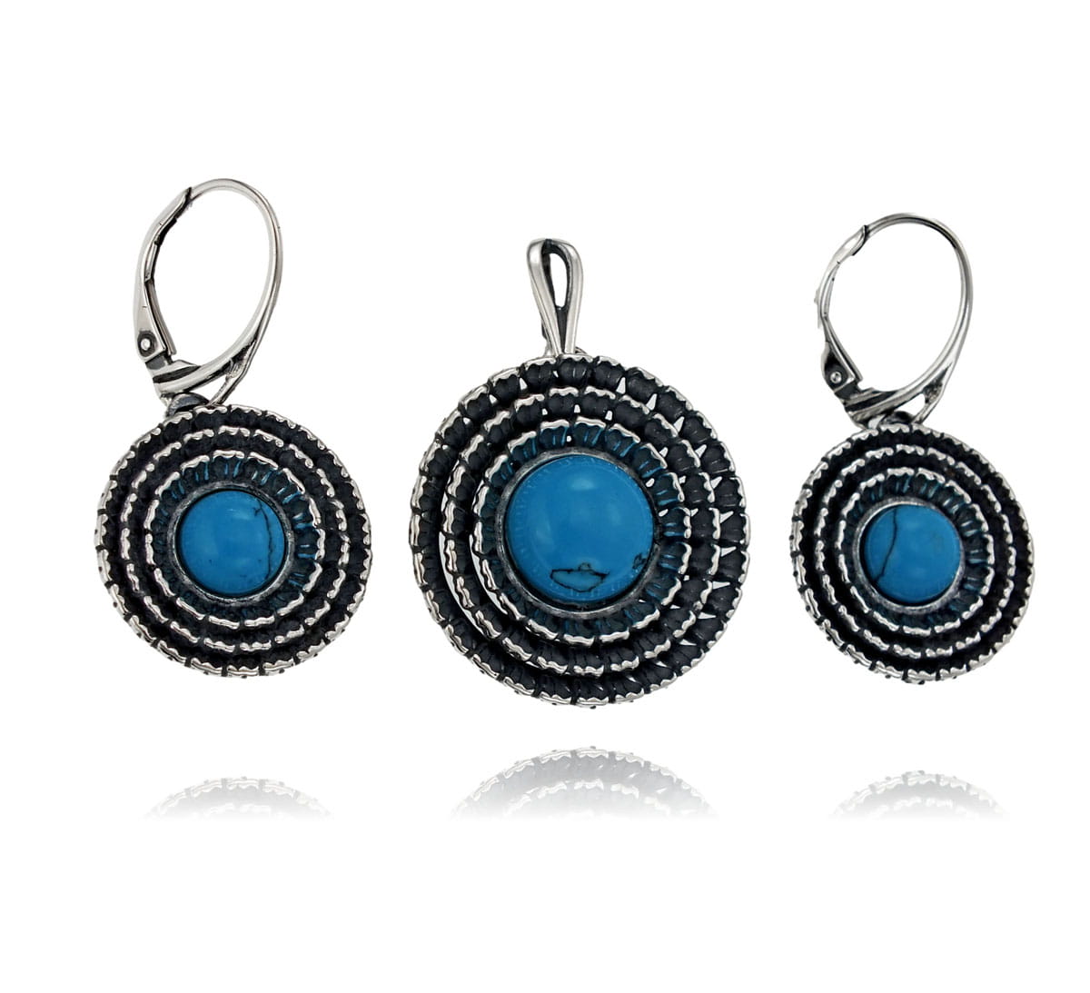 Srebrny Oksydowany Komplet z Turkusami Turkus
