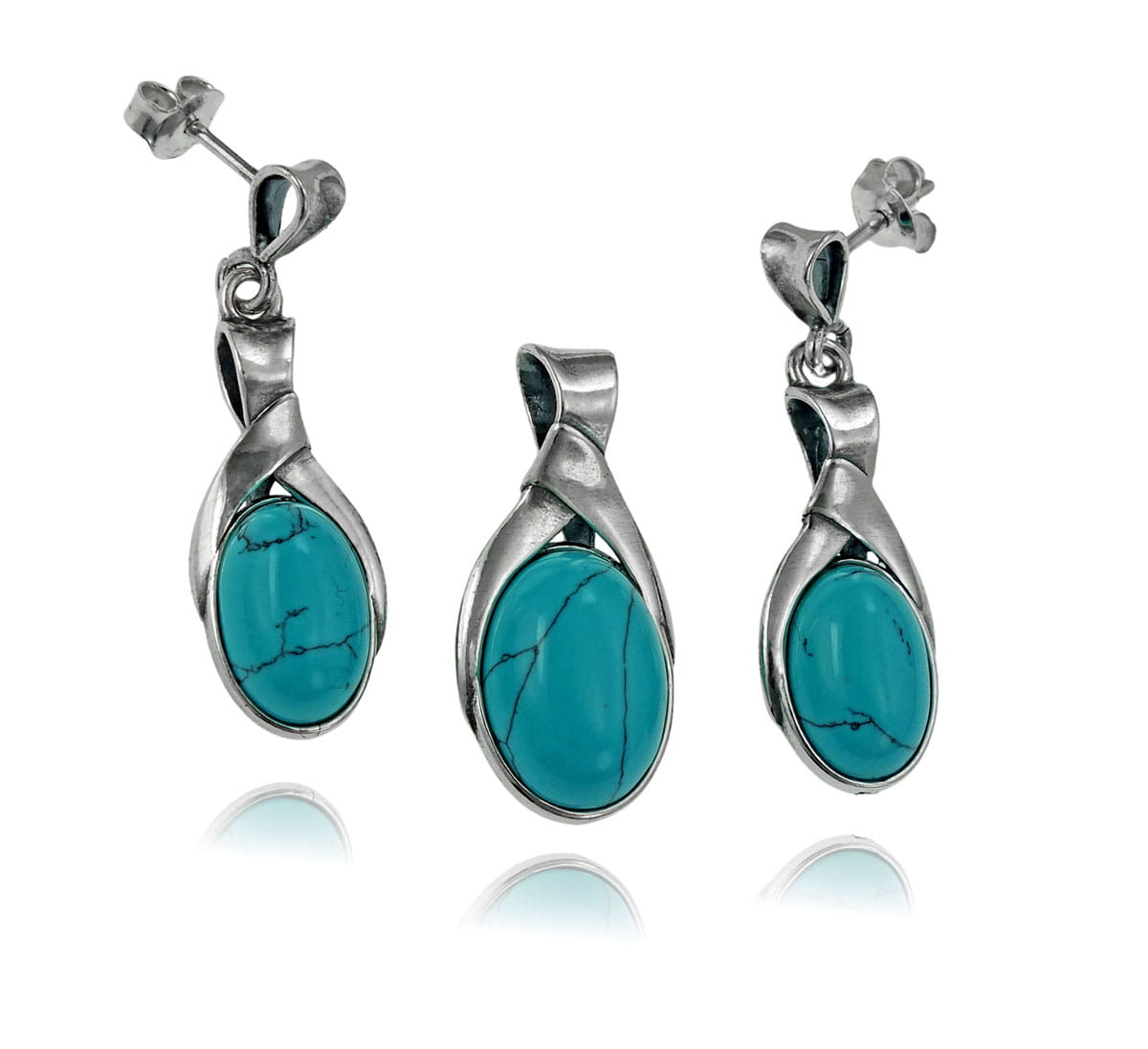 Srebrny Oksydowany Komplet z Turkusami Turkus