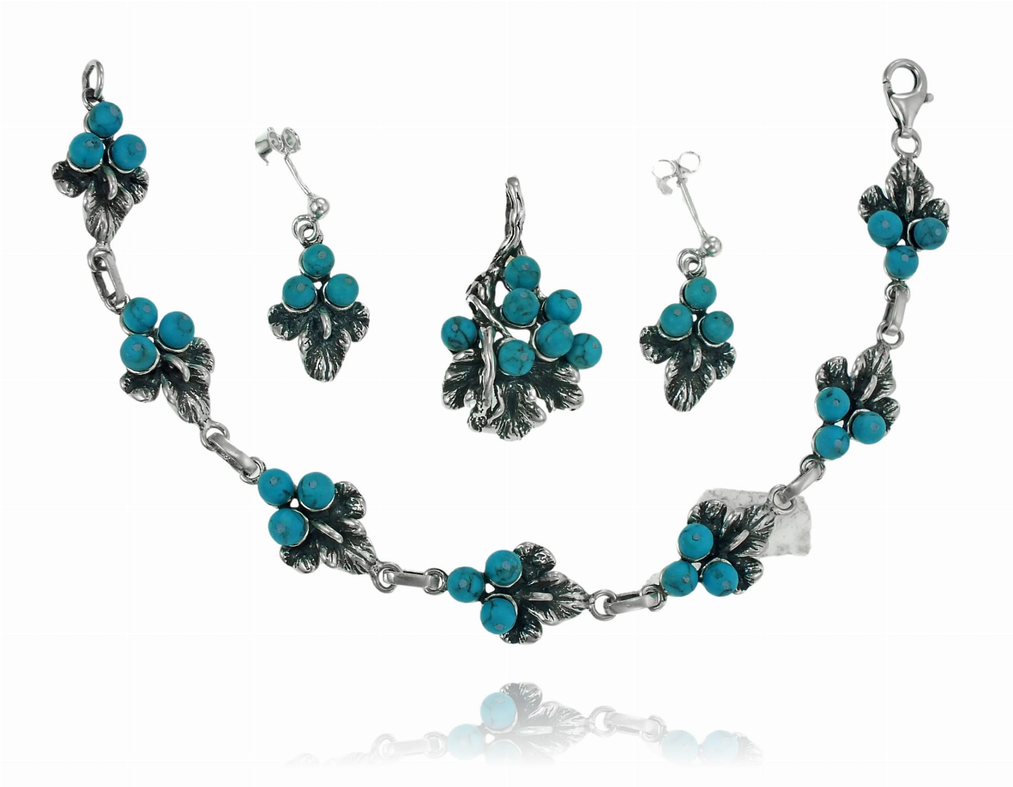 Srebrny Oksydowany Komplet z Turkusami Turkus