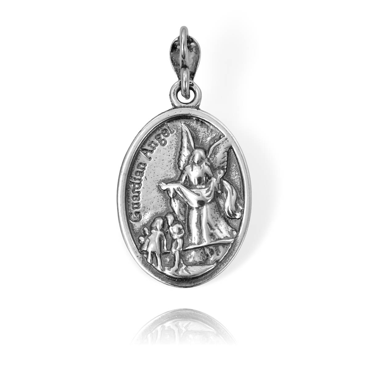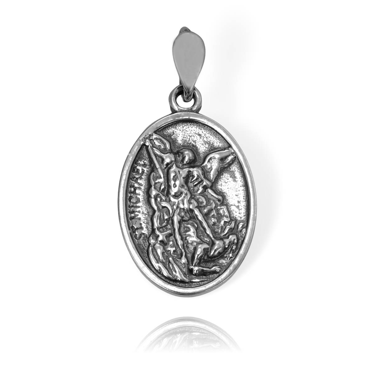 Srebrny Oksydowany Medalik Św. Michał i Anioł Stróż