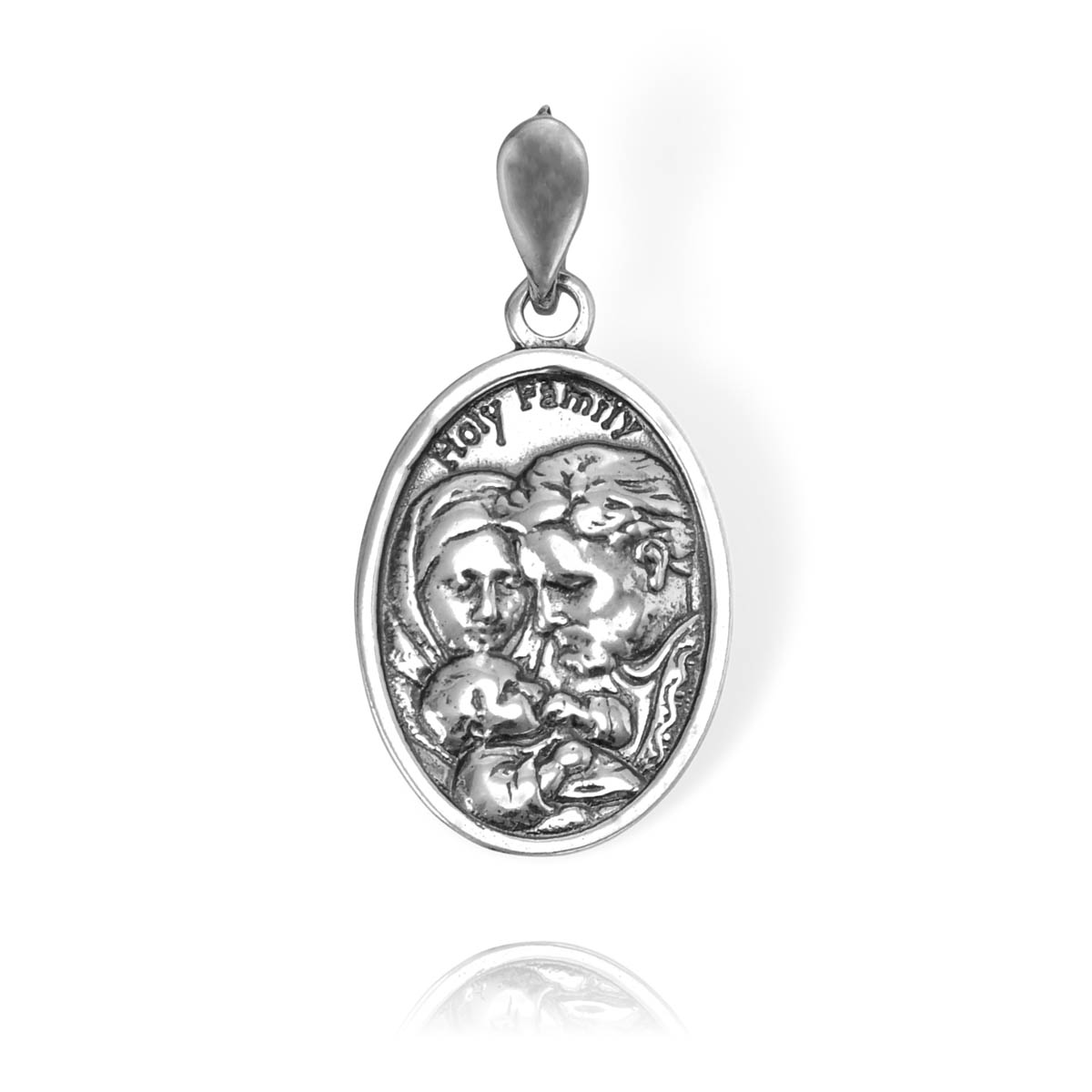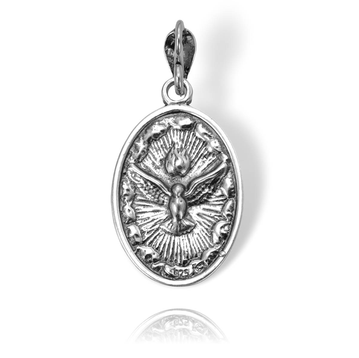 Srebrny Oksydowany Medalik Święta Rodzina, Duch Święty
