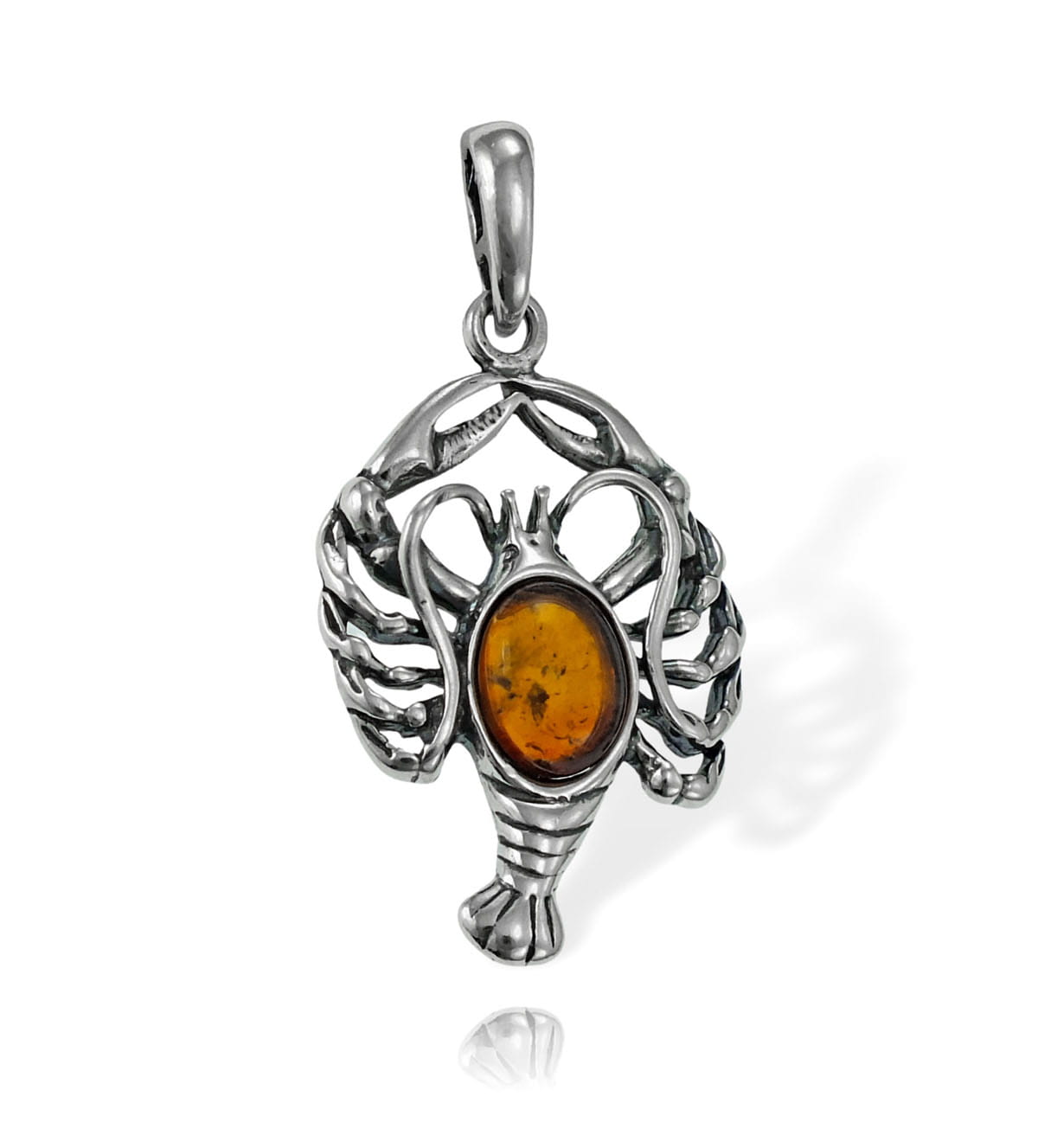 Srebrny Oksydowany Wisiorek Skorpion z Bursztynem