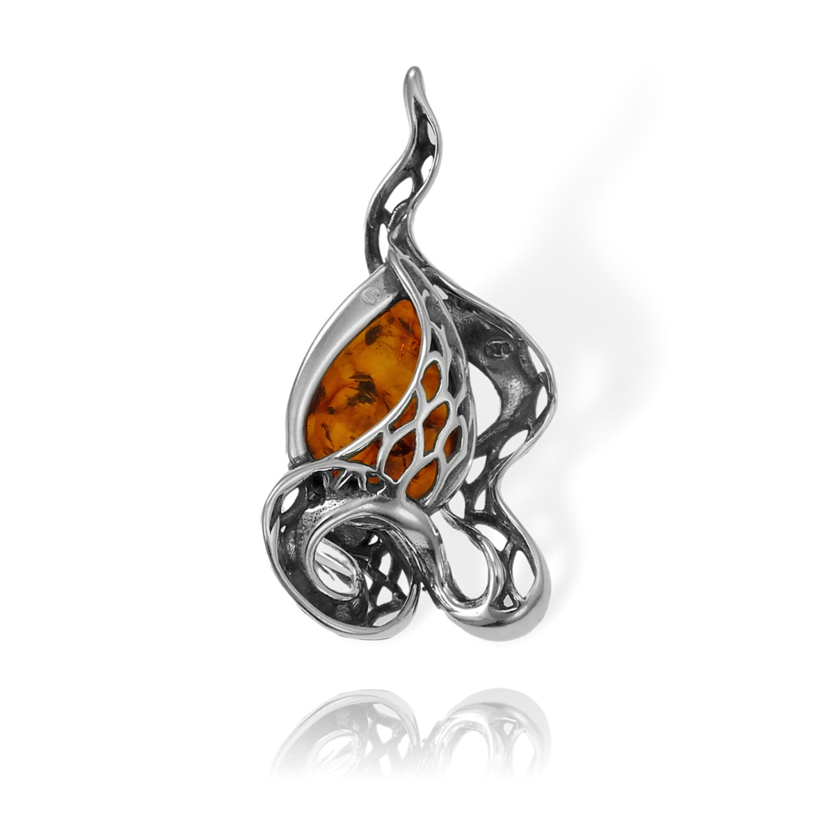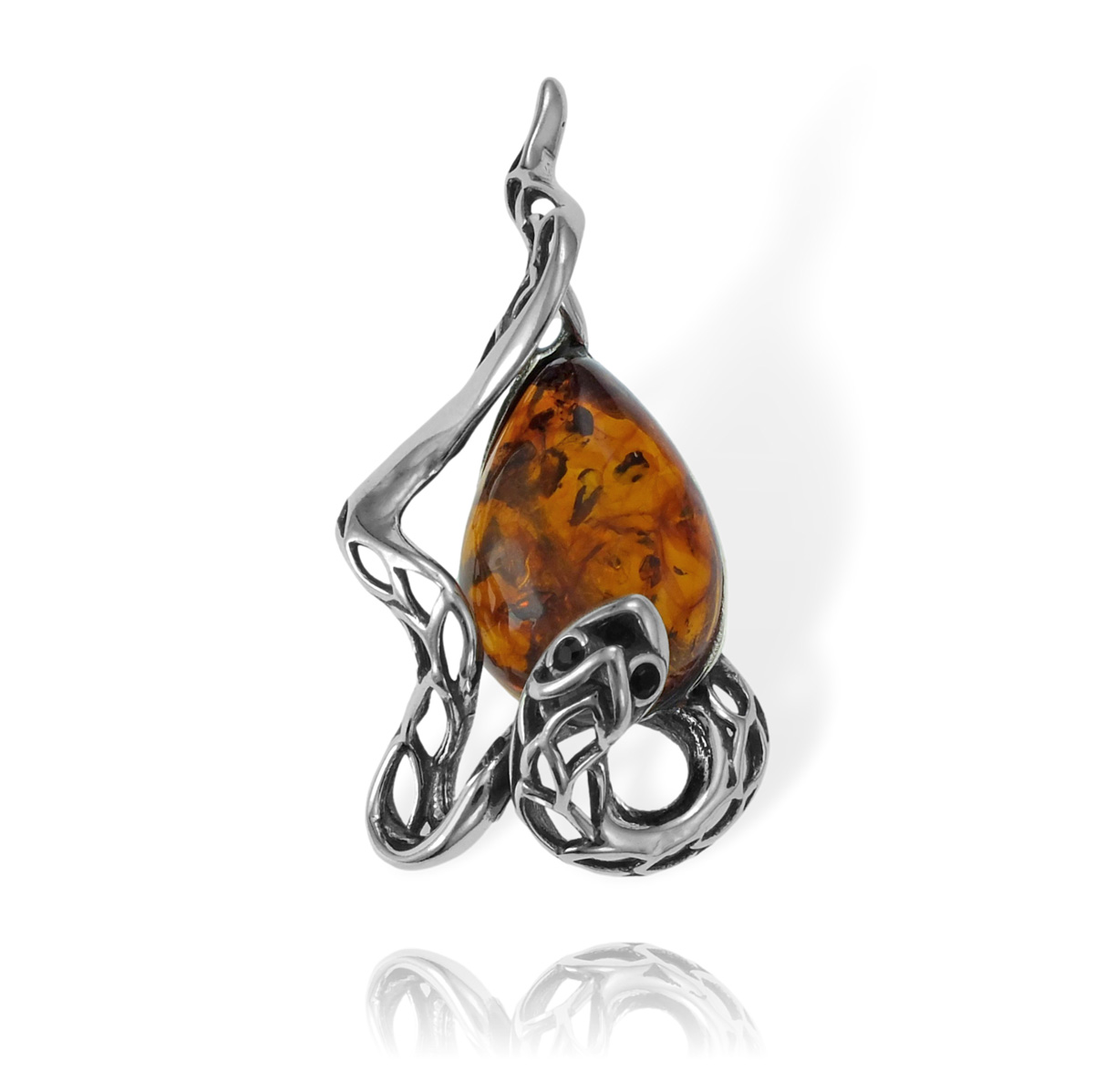 Srebrny Oksydowany Wisiorek Wąż z Bursztynem !