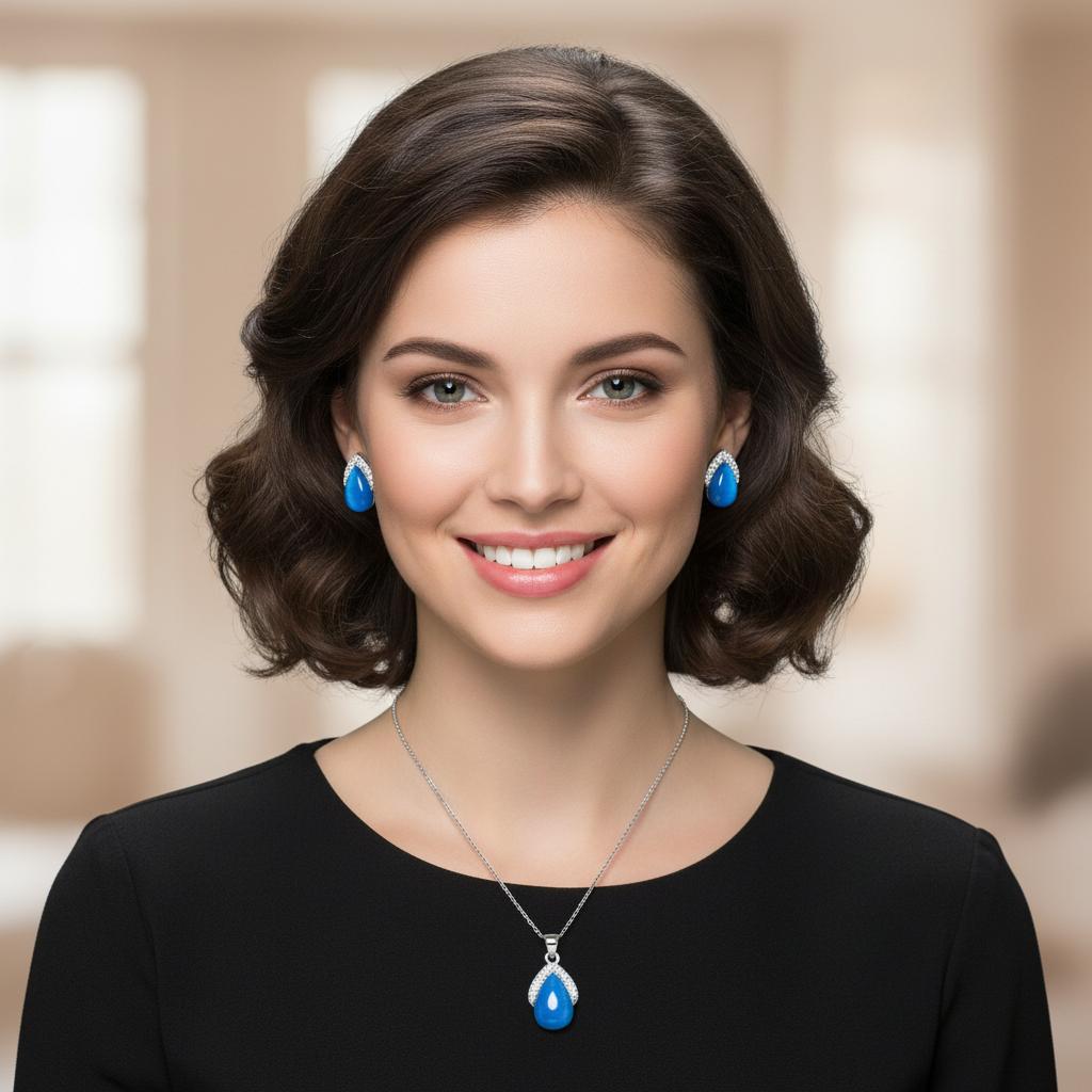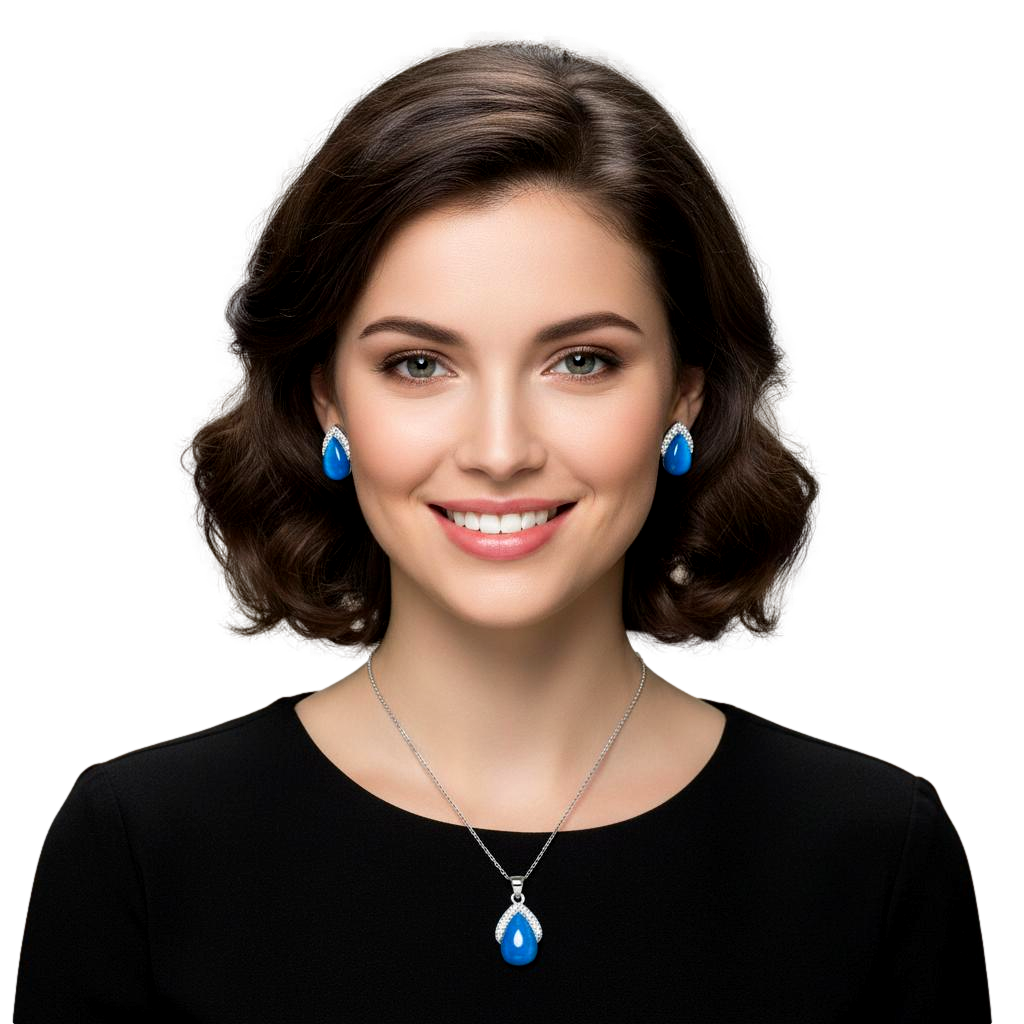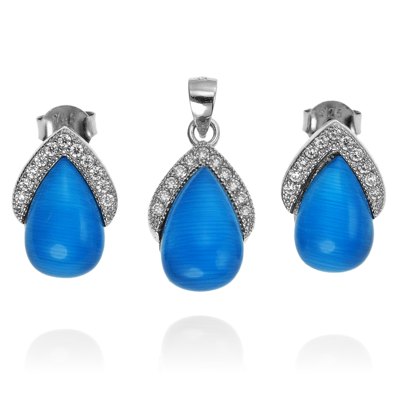 Srebrny Rodowany Komplet z Błękitnym Uleksytem i Cyrkoniami