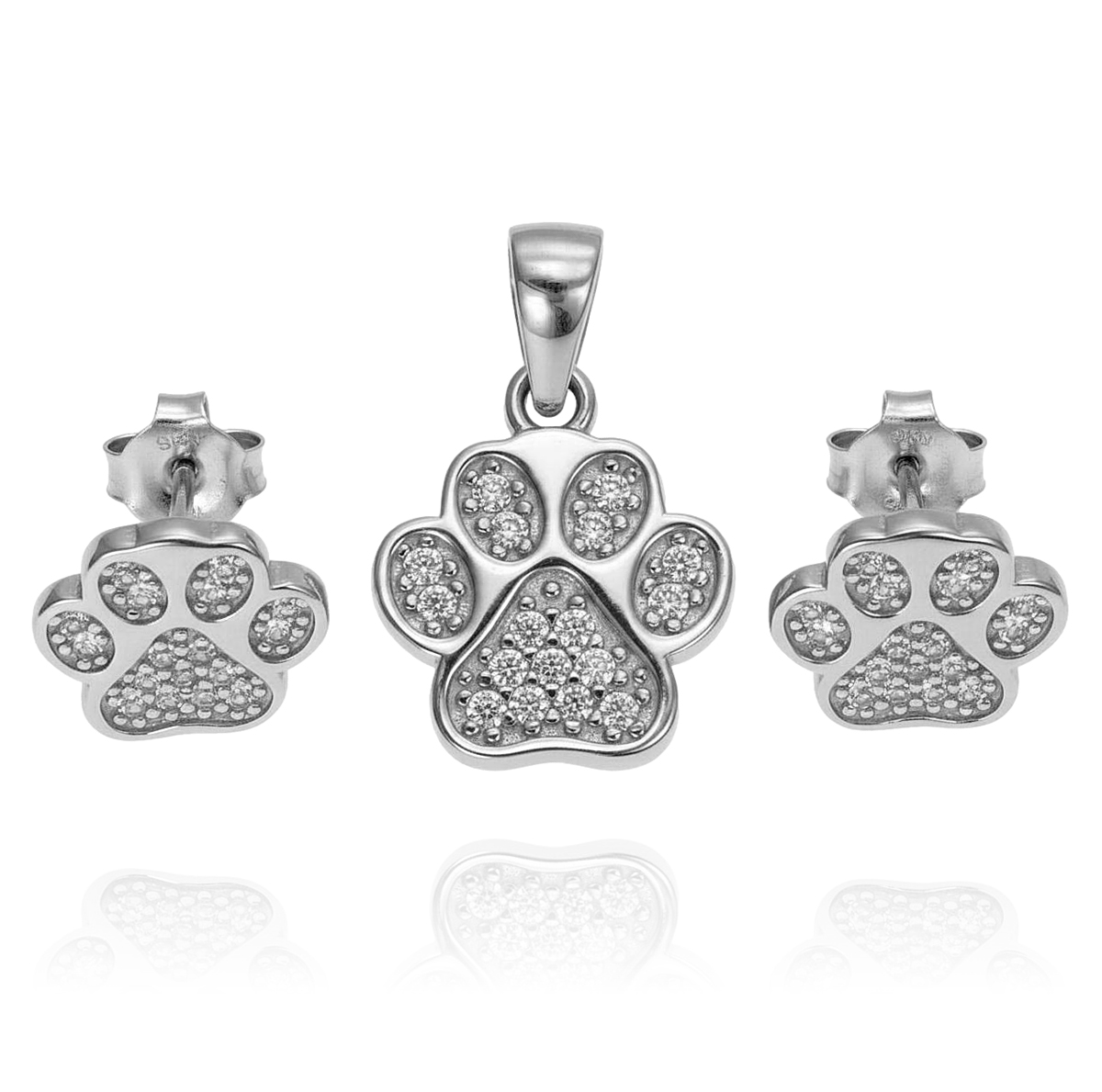 Srebrny Rodowany Komplet Łapy Łapki z Cyrkoniami