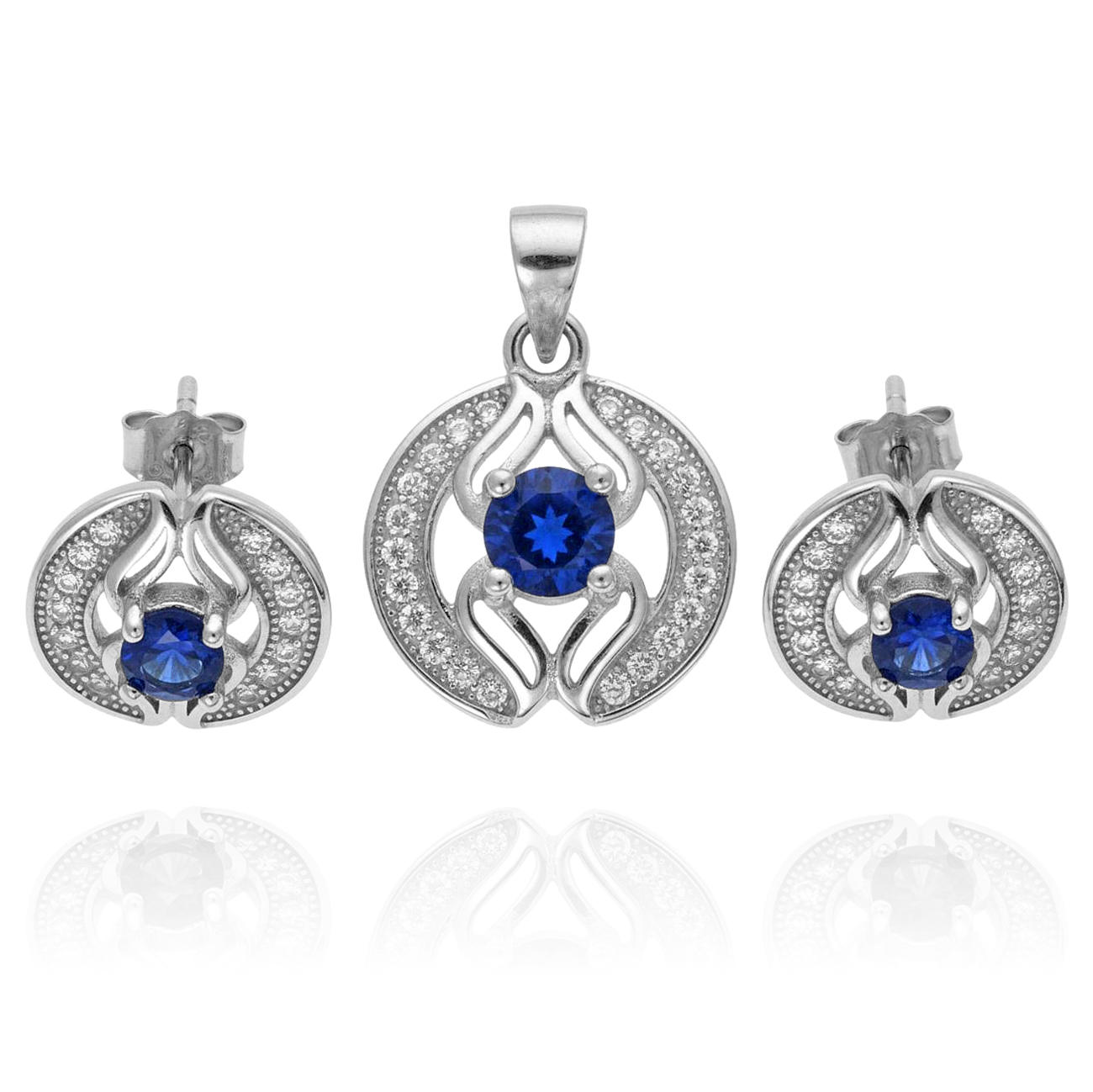 Srebrny Rodowany Komplet z Cyrkoniami !