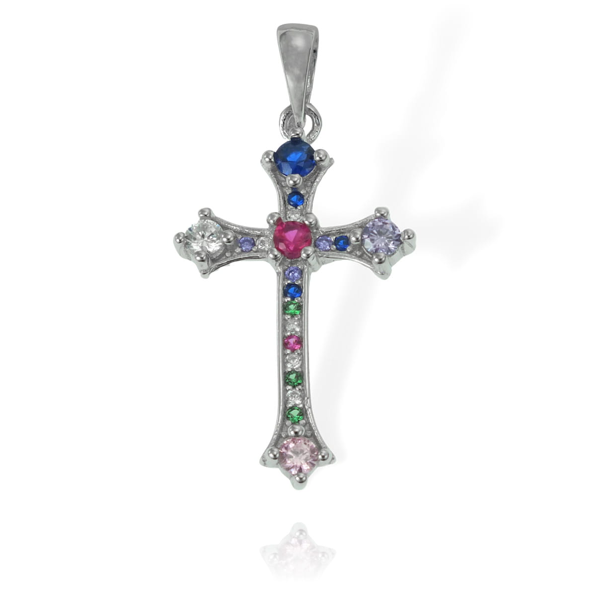 Srebrny Rodowany Krzyż Krzyżyk z Cyrkoniami
