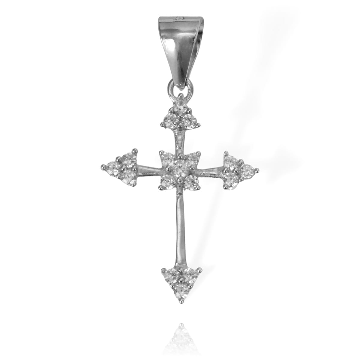 Srebrny Rodowany Krzyż z Cyrkoniami