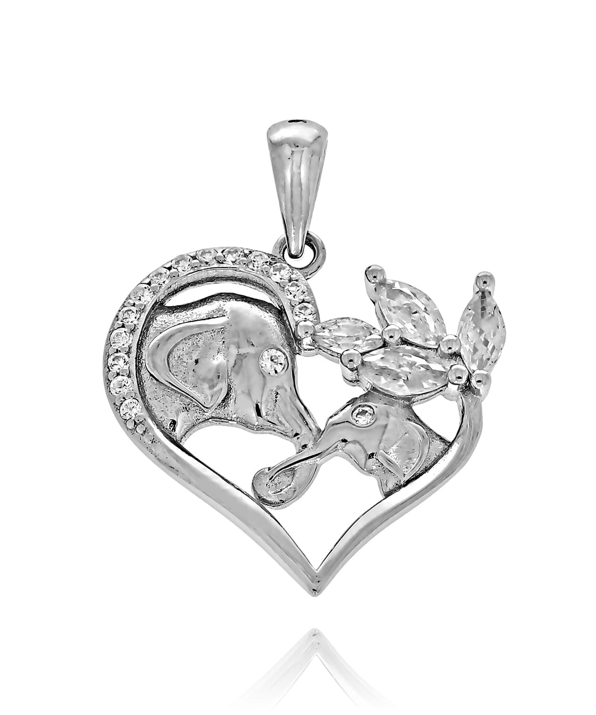 Srebrny Rodowany Wisiorek Serce Dwa Słonie w Sercu z Cyrkoniami