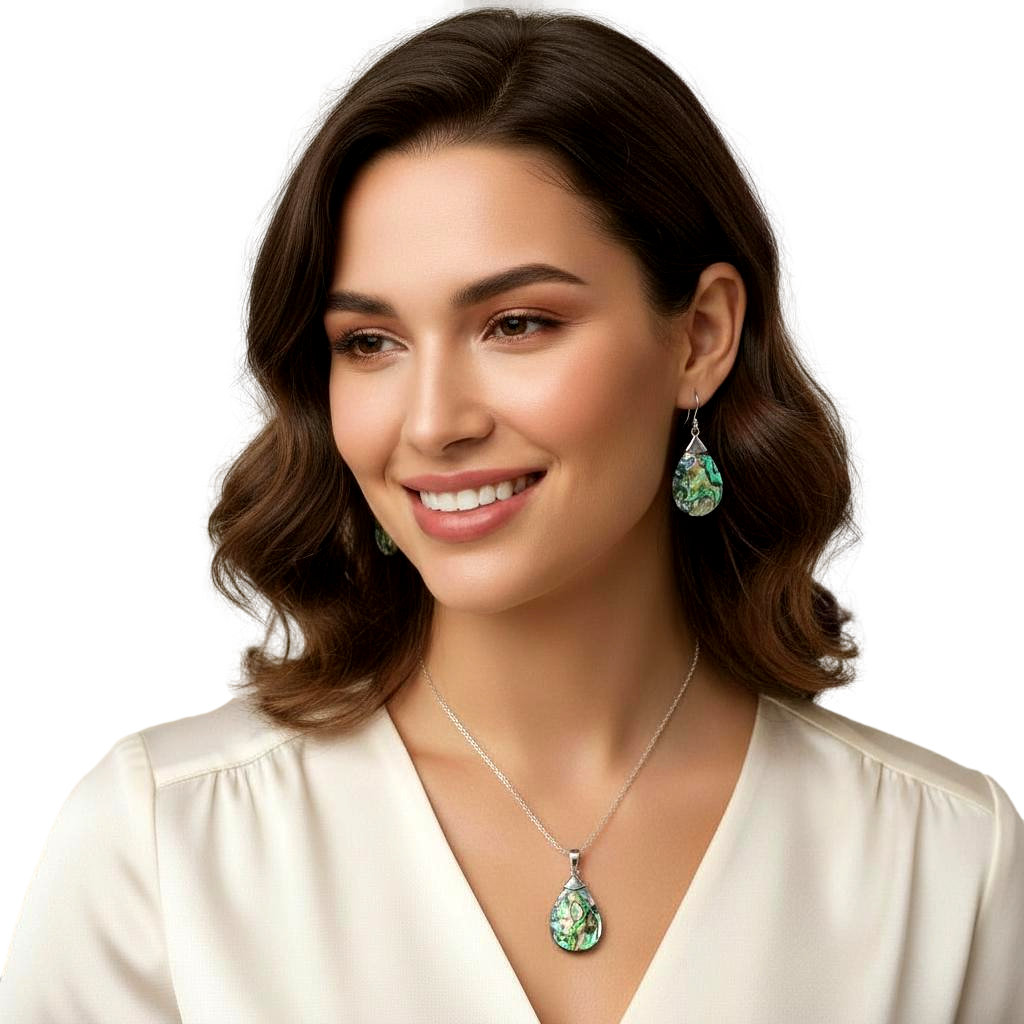 Srebrny Unikalny Komplet z Masą Perłową