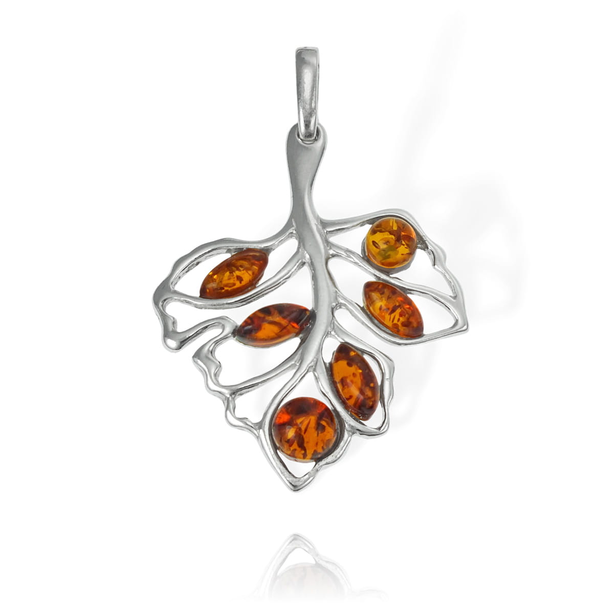 Srebrny Wisiorek Ażurowy Liść, Listek z Bursztynami !