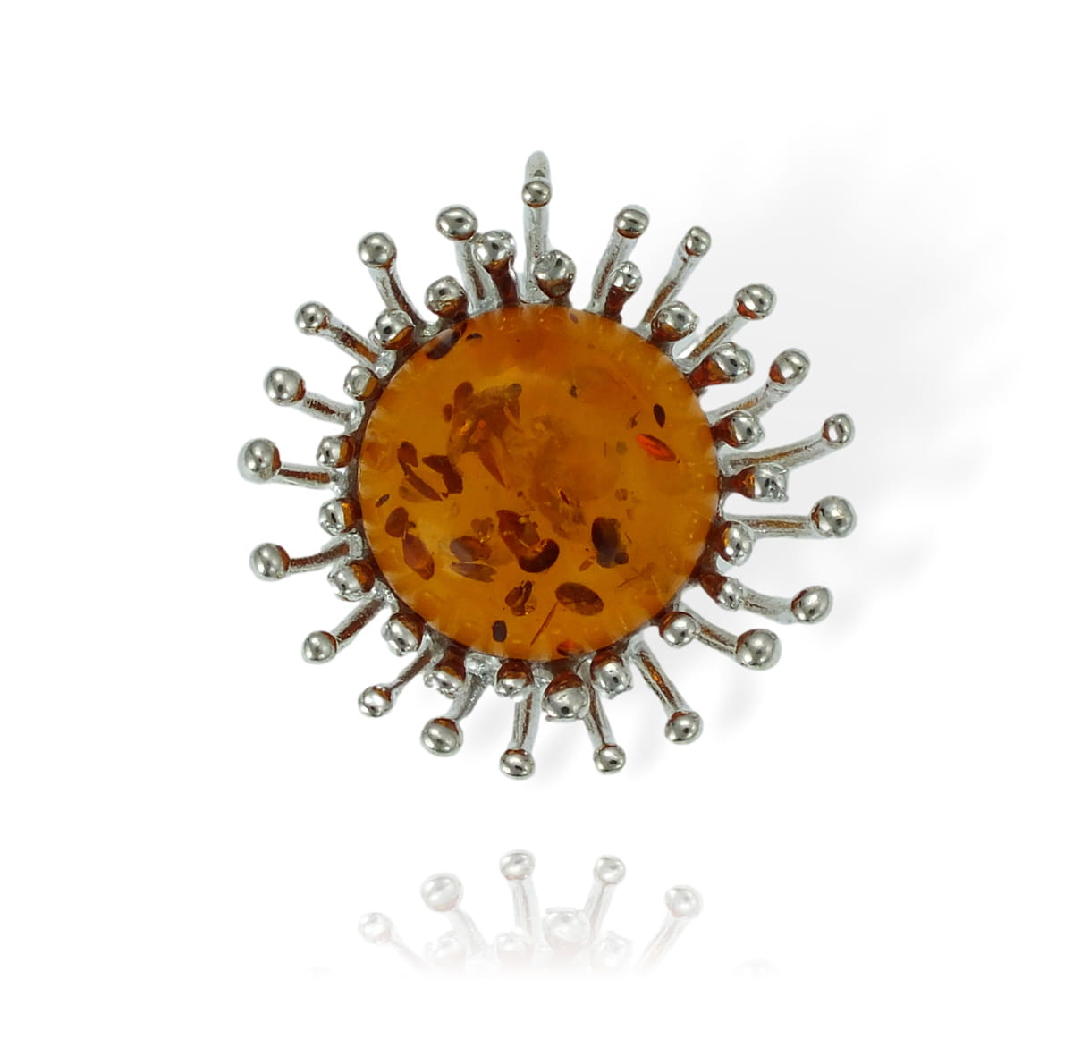 Srebrny Wisiorek Kwiat, Kwiatek z Bursztynem !