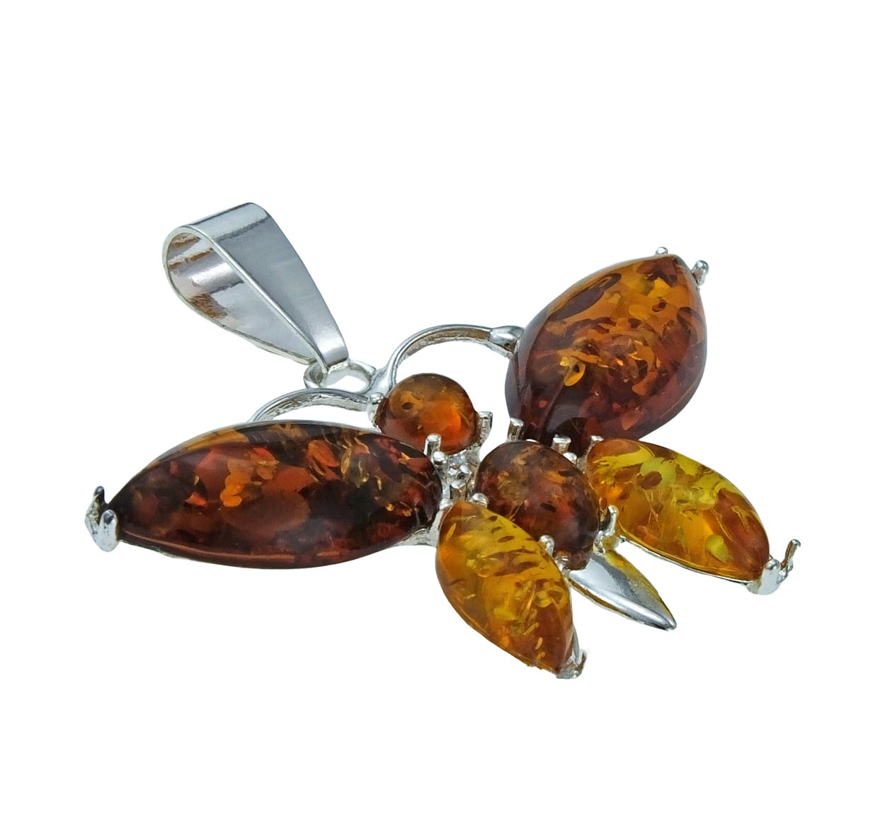 Srebrny Wisiorek Motyl z Bursztynami !
