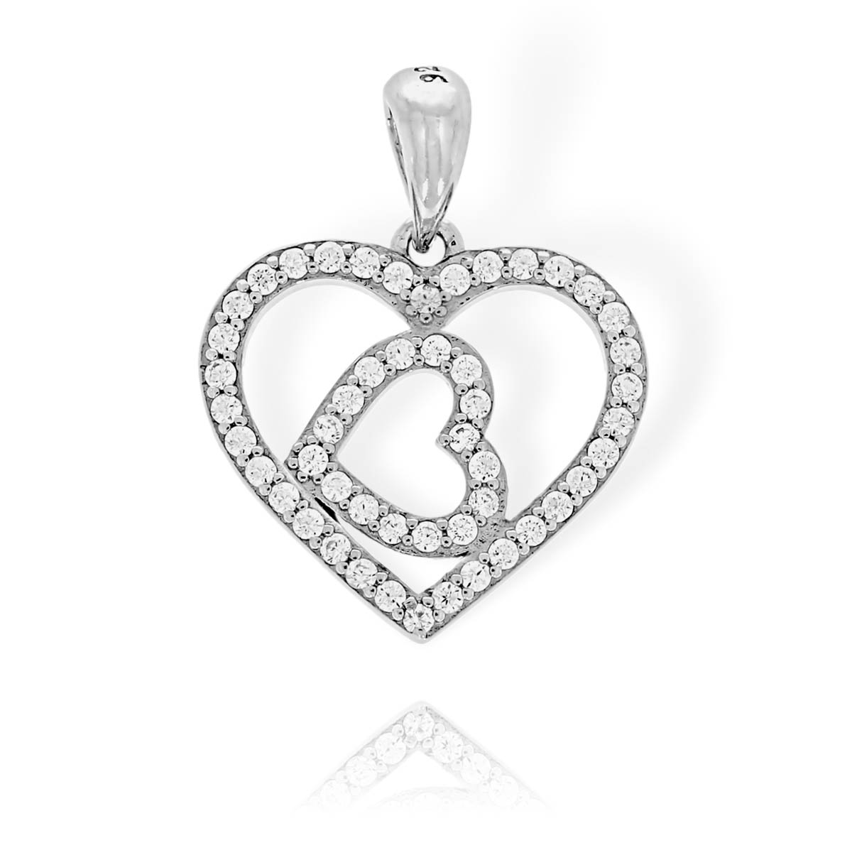 Srebrny Wisiorek Serce w Sercu z Cyrkoniami