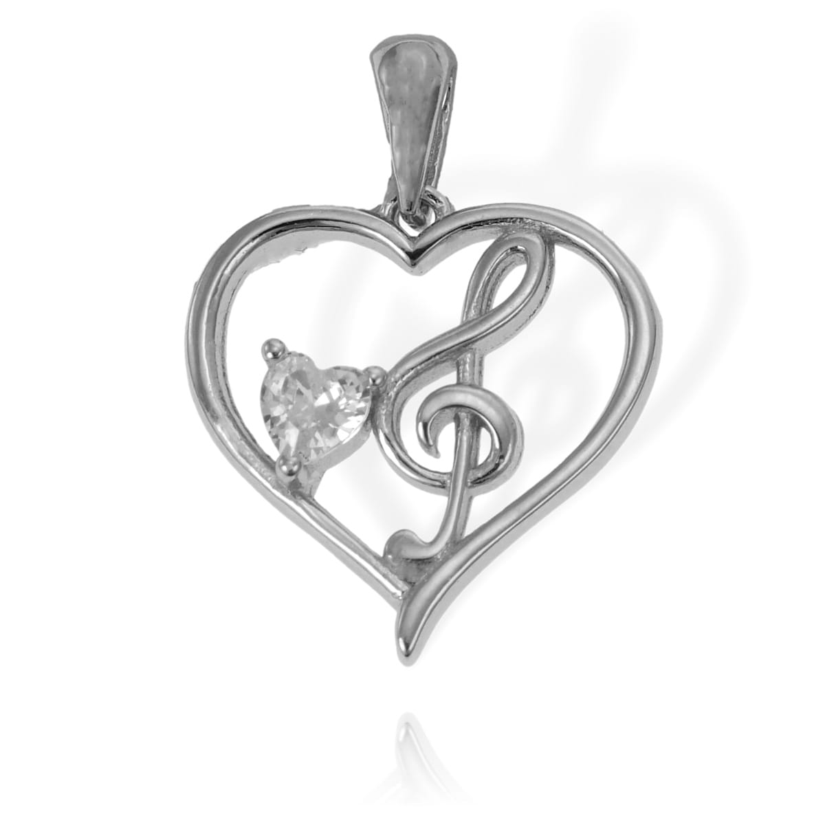 Srebrny Wisiorek Serce z Kluczem Wiolinowym z Cyrkonią