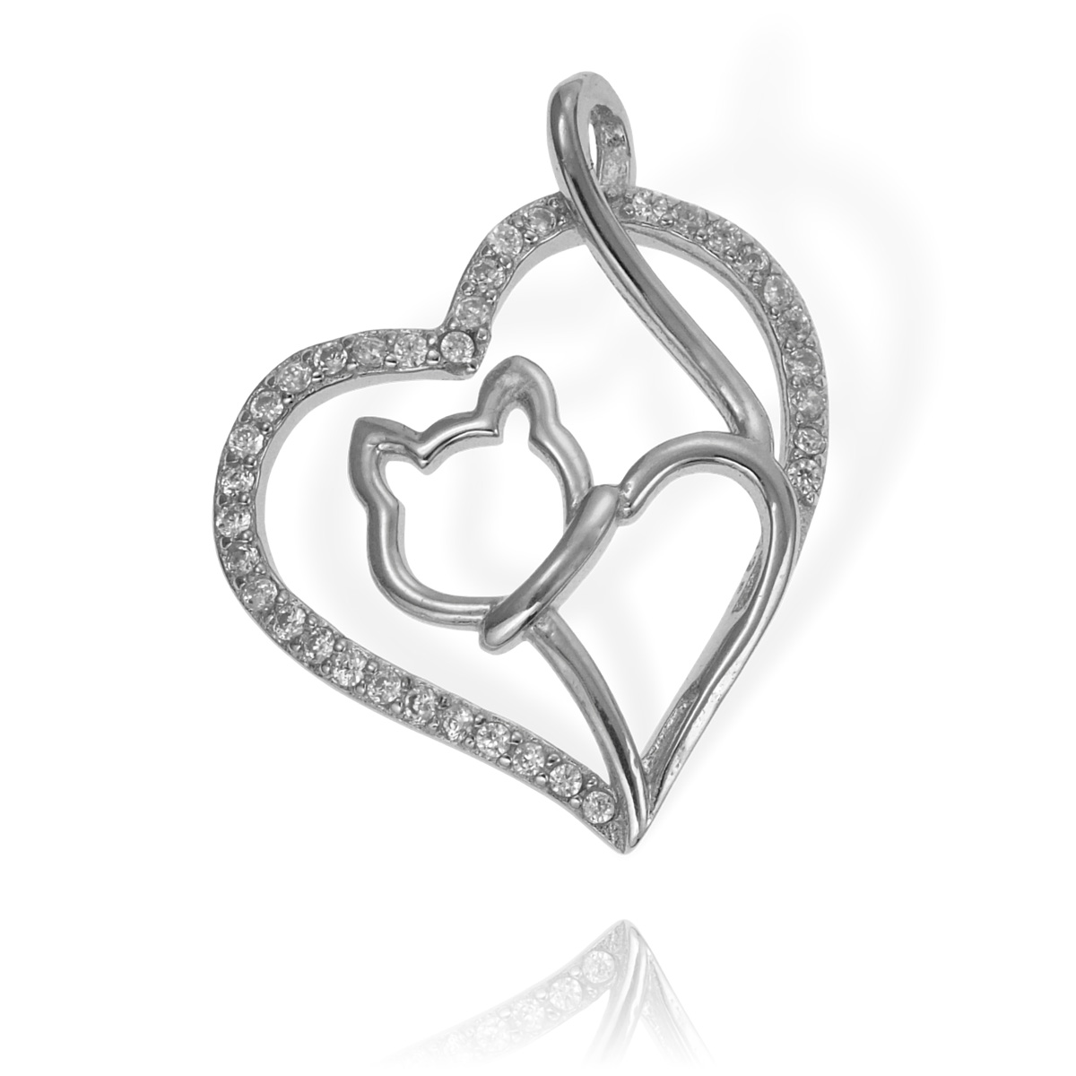 Srebrny Wisiorek Serce z Kotem, Kotkiem z Cyrkoniami