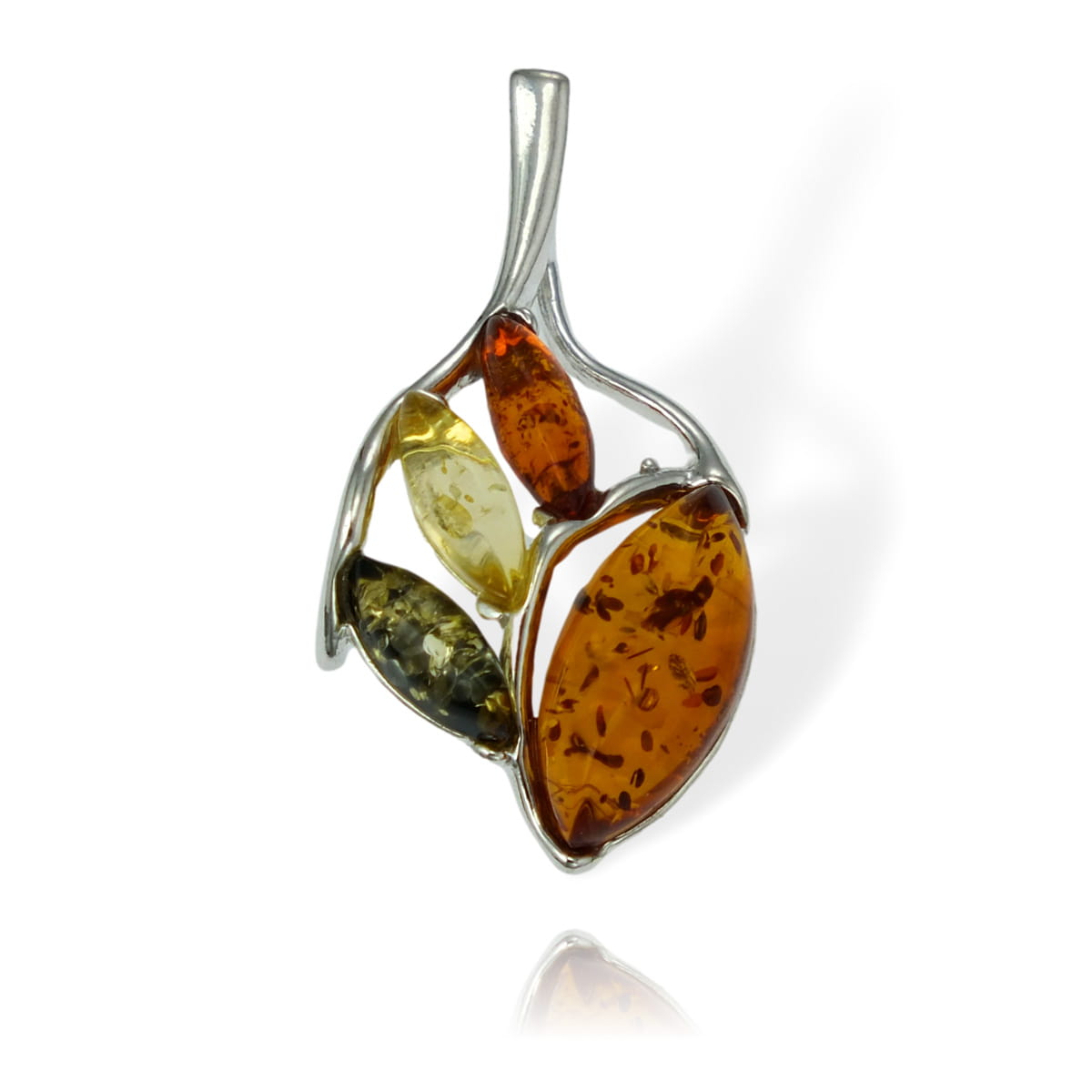 Srebrny Wisiorek z Kolorowymi Bursztynami
